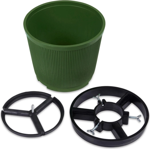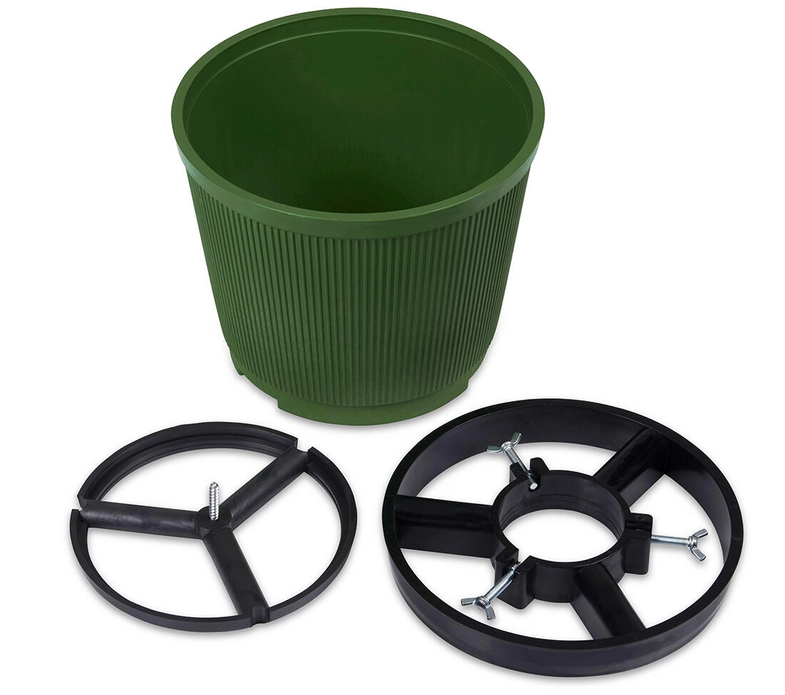 Wyjmowany element z tworzywa ułatwia czyszczenie i obsługę. Dla jeszcze większej stabilności podstawę można wypełnić piaskiem i wodą. Stojak jest odpowiedni dla szerokiej gamy pni dzięki dużemu otworowi montażowemu.