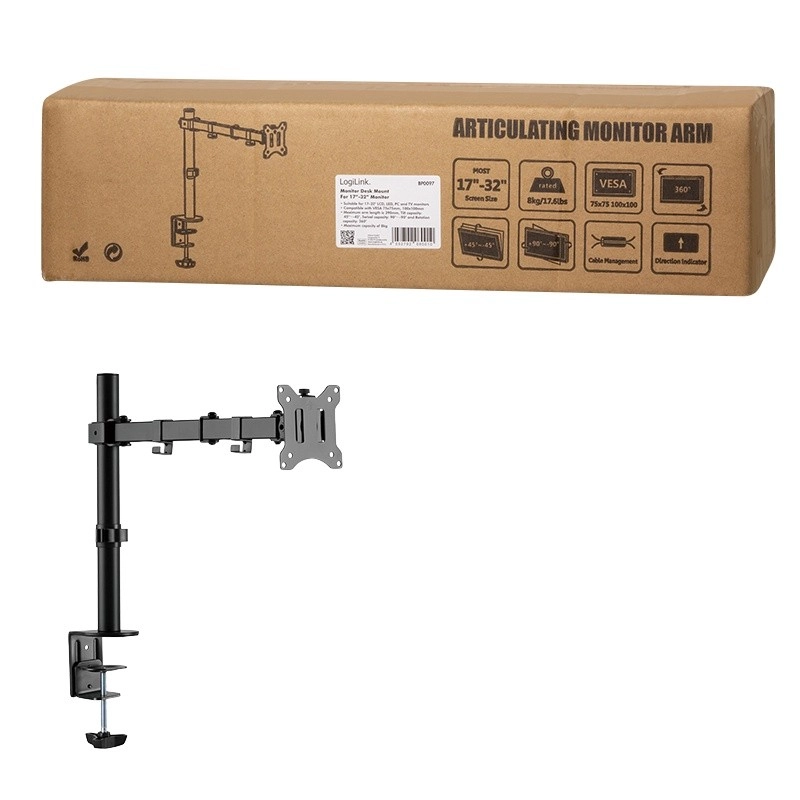 Korzystaj z płynnego pochylania, obracania i rotacji dla wygodnej pracy, grania i oglądania wideo. Mocowanie do blatu oszczędza miejsce i poprawia ergonomię Twojego stanowiska pracy.