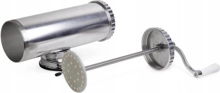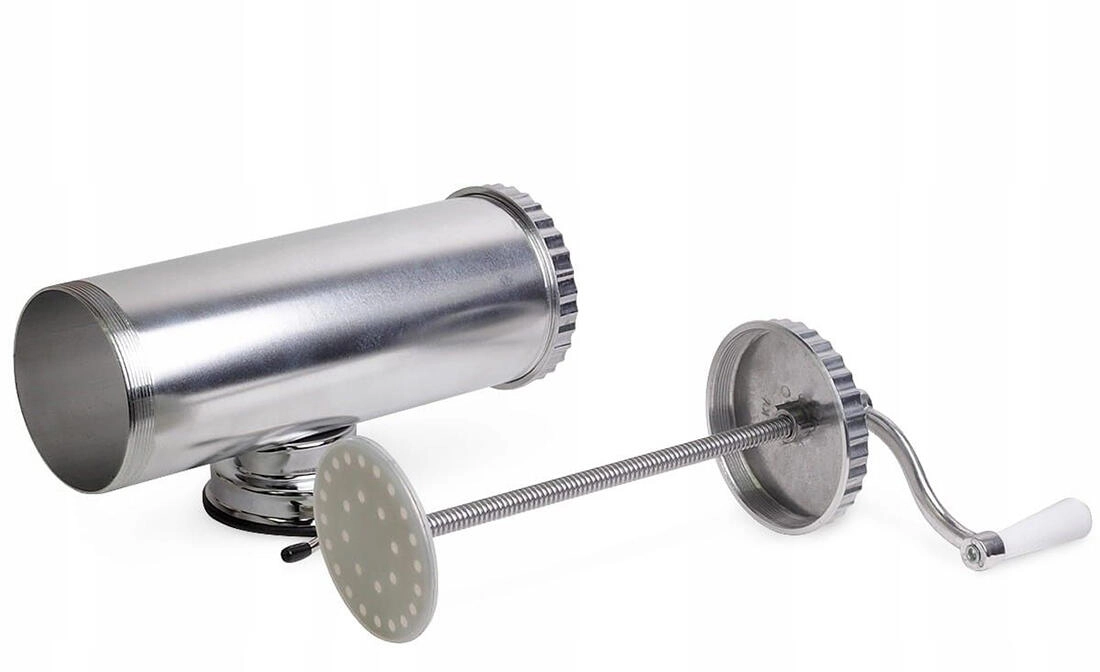 Napełniarka to idealny pomocnik do domowej produkcji wędlin. Aluminiowy korpus gwarantuje długą żywotność i łatwą pielęgnację, a ręczna korbka umożliwia płynne i kontrolowane napełnianie osłonek bez ich rozrywania. Dzięki kompaktowym wymiarom wygodnie ustawisz ją na blacie roboczym.