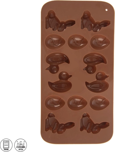 Stwórz z łatwością wielkanocne przysmaki dzięki praktycznej silikonowej formie na zajączki, kaczuszki i jajeczka. Forma jest nieprzywierająca, wytrzymuje temperatury od -40 °C do +220 °C, nie pochłania smaków ani zapachów i nadaje się do zmywarki. Idealna do czekolady, cukierków, lodu i pieczenia.