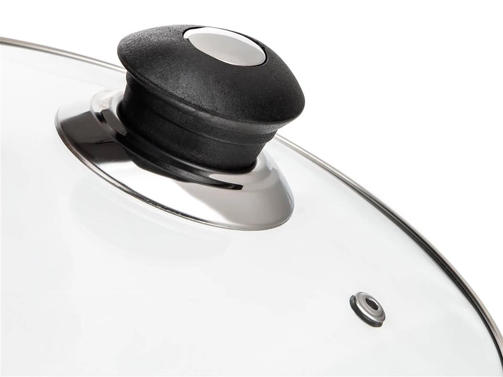 Przezroczysta pokrywka umożliwia podgląd potrawy bez podnoszenia, a zintegrowany zawór pary reguluje ciśnienie i wilgotność dla równomiernych rezultatów.