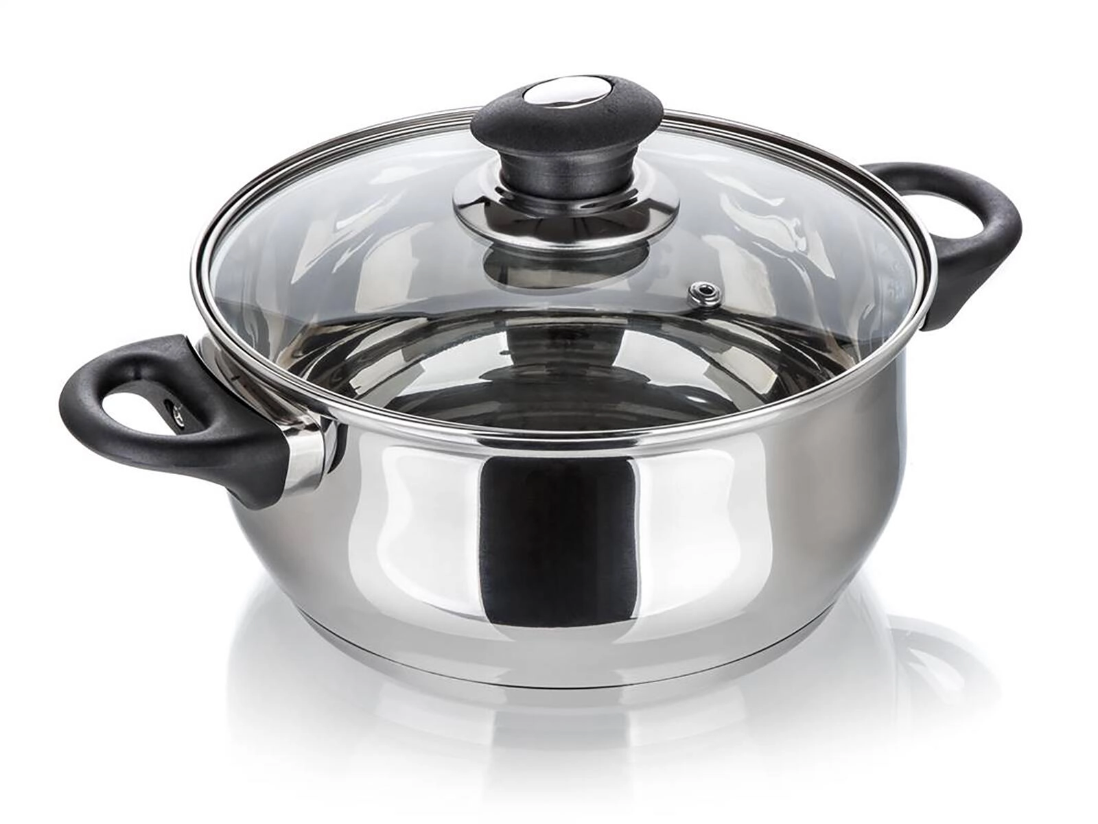 Garnek nierdzewny ze szklaną pokrywką SUPER VALUE łączy wytrzymałość, łatwą pielęgnację i nowoczesny, błyszczący design. Dzięki szerokiemu dnu i solidnej konstrukcji zapewnia stabilne przewodzenie ciepła, dlatego świetnie sprawdzi się do gotowania zup, sosów i dodatków. Przezroczysta pokrywka z zaworem pary pozwala kontrolować przebieg gotowania bez zbędnego podnoszenia.