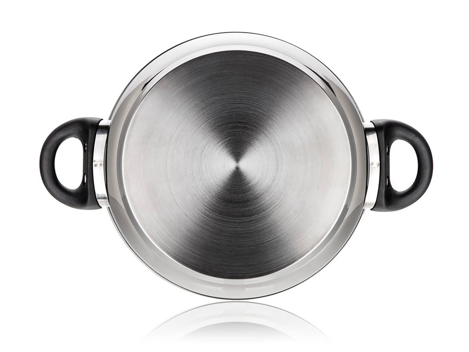 Ergonomiczne uchwyty z bakelitu oraz gałka na pokrywce gwarantują bezpieczne i wygodne trzymanie nawet w wyższych temperaturach. Garnek jest kompatybilny ze wszystkimi rodzajami płyt grzewczych – gaz, elektryczna, ceramiczna i indukcyjna – a po gotowaniu z łatwością umyjesz go w zmywarce.