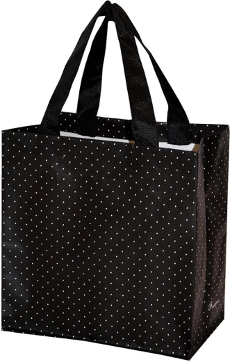Ta stylowa torba w czarno-białe kropki jest idealna na codzienne zakupy i szybkie wyjścia. Dzięki solidnemu materiałowi z tkanego laminowanego polipropylenu wytrzymuje udźwig do 10 kg, zachowując jednocześnie niską wagę i długą żywotność. Kompaktowe wymiary 27 × 27 × 15 cm oraz pojemność 10 l sprawiają, że z łatwością mieści się w szafce, samochodzie lub torebce.