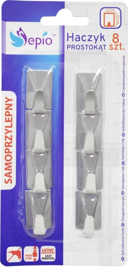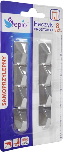 Praktyczny zestaw 8 samoprzylepnych haczyków ze stali nierdzewnej do łazienki, kuchni i przedpokoju. Dzięki dwustronnej taśmie klejącej montaż jest szybki i bez wiercenia, więc nie uszkadzasz płytek ani ścian. Haczyki są odporne na wilgoć, mają elegancki, kanciasty design i utrzymają do 2 kg.
