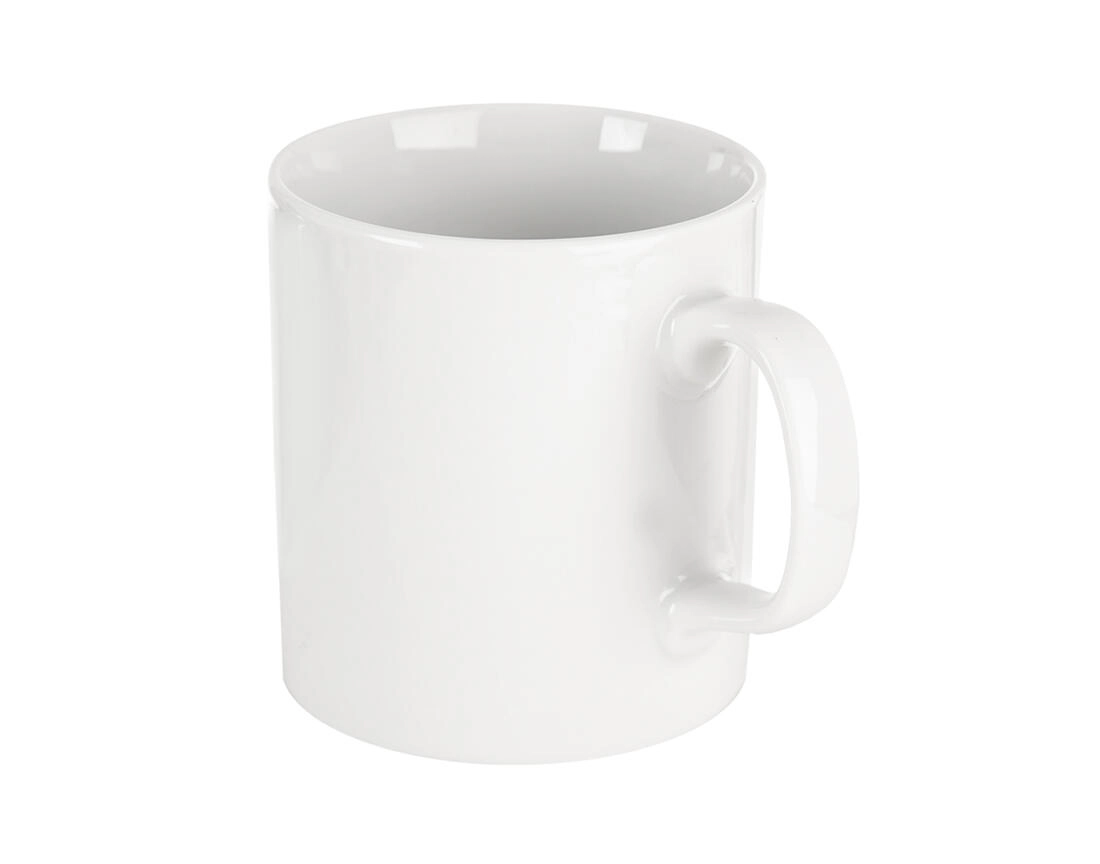 Całkowicie biały kubek bez nadruku pasuje do każdej kuchni i można go łatwo spersonalizować nadrukiem lub naklejką.