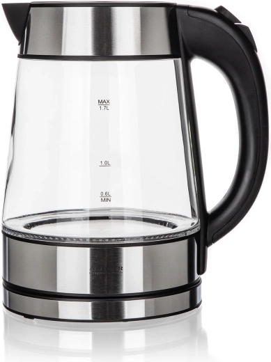 • Szklany korpus o pojemności 1,7 l z czytelną podziałką poziomu.