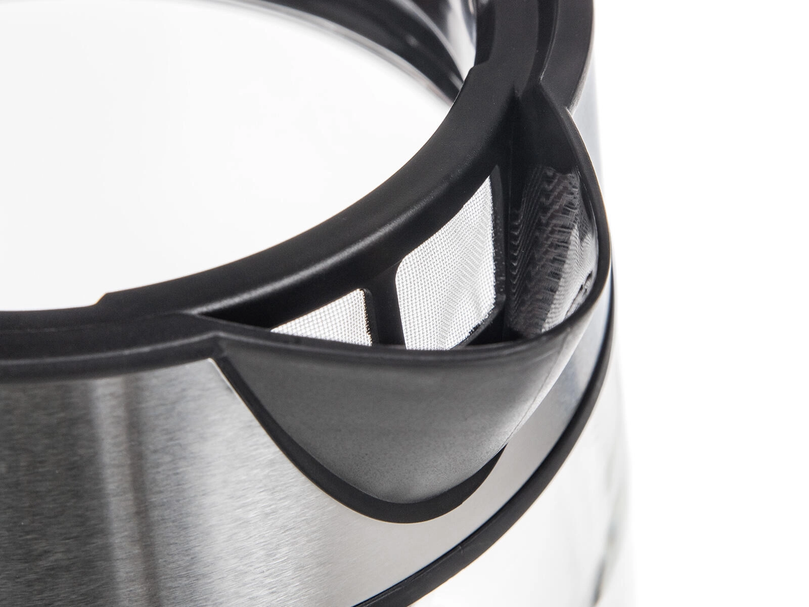 Drobny filtr wychwytuje osady i można go łatwo wyjąć oraz opłukać. Szeroka pokrywa ułatwia napełnianie i czyszczenie wnętrza czajnika.
