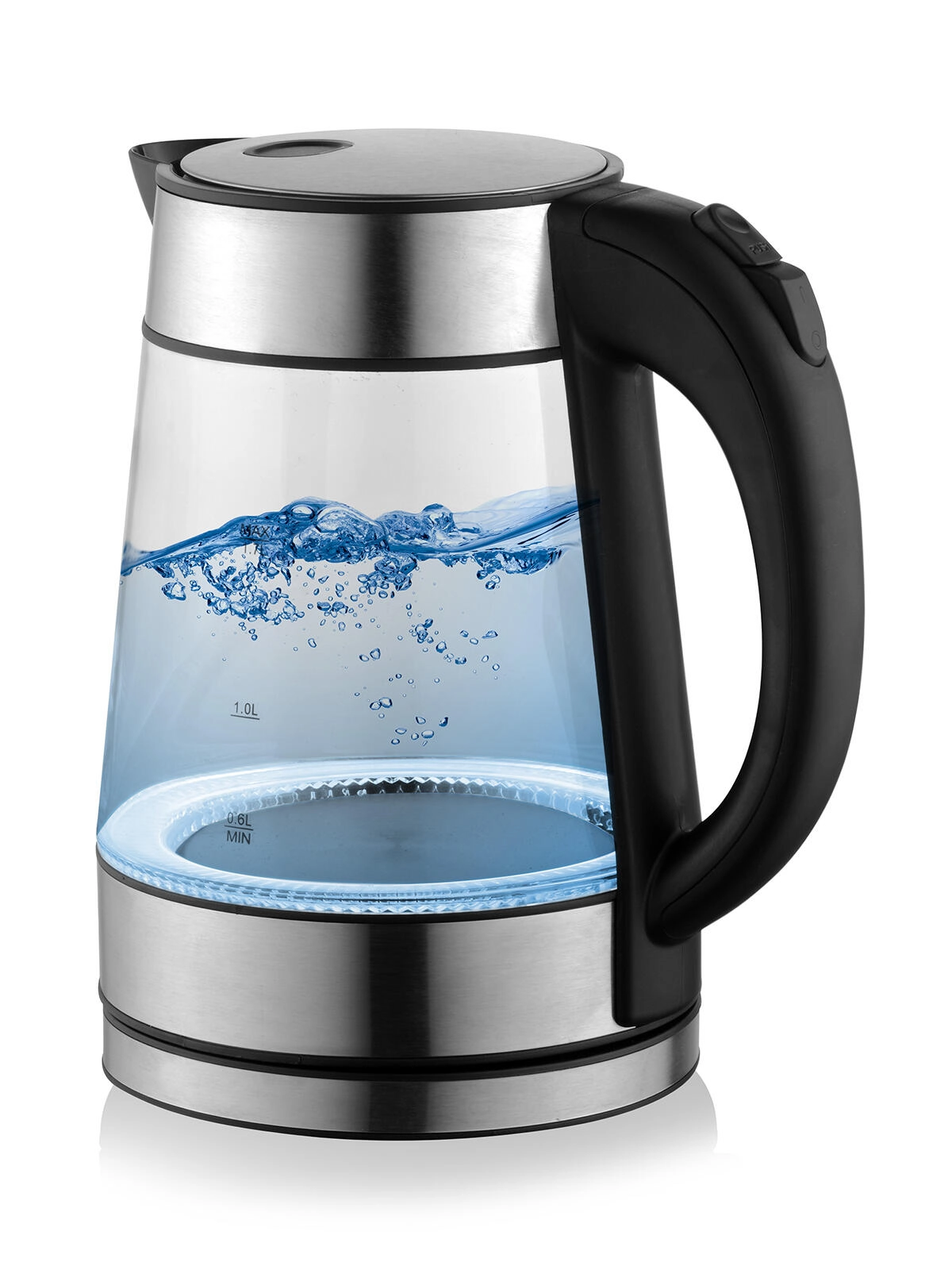 Obserwuj gotowanie wody w czasie rzeczywistym – szklany korpus uzupełnia stylowe podświetlenie LED, które podkreśla bulgotanie i nadaje kuchni nowoczesny wygląd.