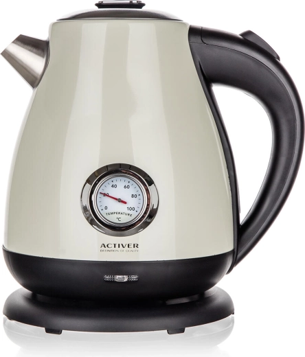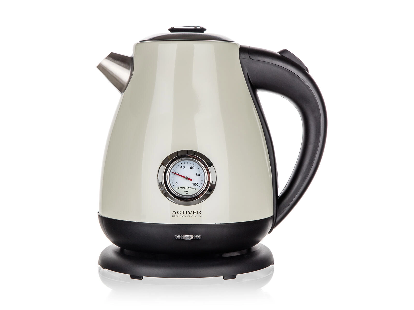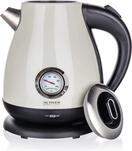 Elegancki czajnik EBBA z dwuwarstwowym, stalowym korpusem w kolorze czarno‑białym stanie się niezawodnym pomocnikiem w każdej kuchni. Dzięki mocy 1850–2200 W szybko podgrzeje wodę, a zintegrowany analogowy termometr pozwoli śledzić temperaturę idealną do herbaty, kawy i innych napojów.