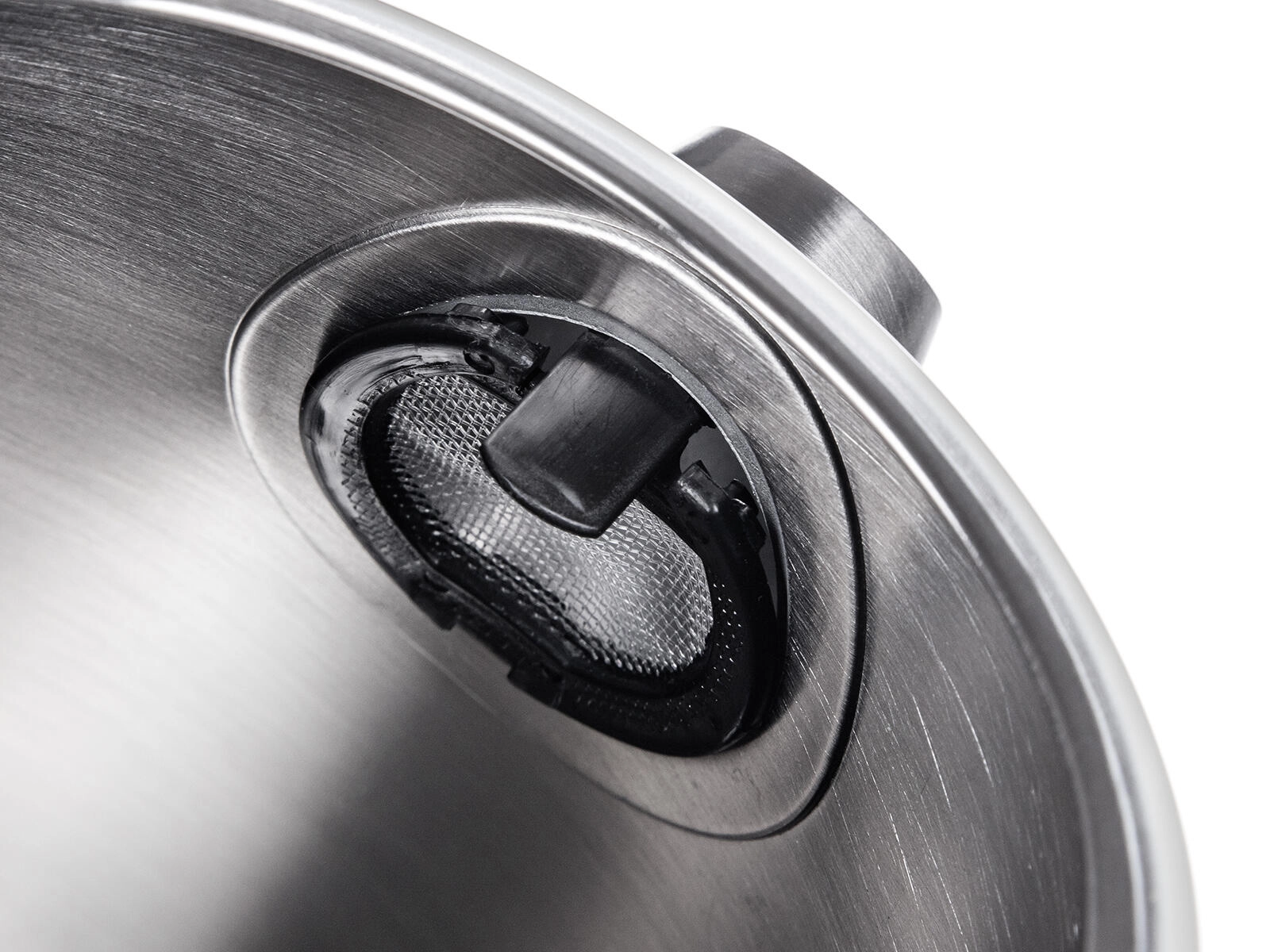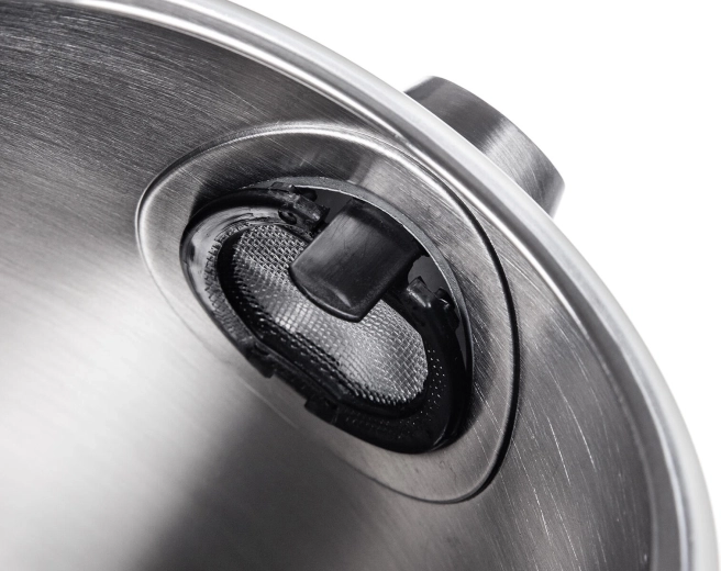 Trwała stal nierdzewna i wbudowany filtr wyłapują grubsze zanieczyszczenia, dzięki czemu cieszysz się czystą wodą i dłuższą żywotnością urządzenia.