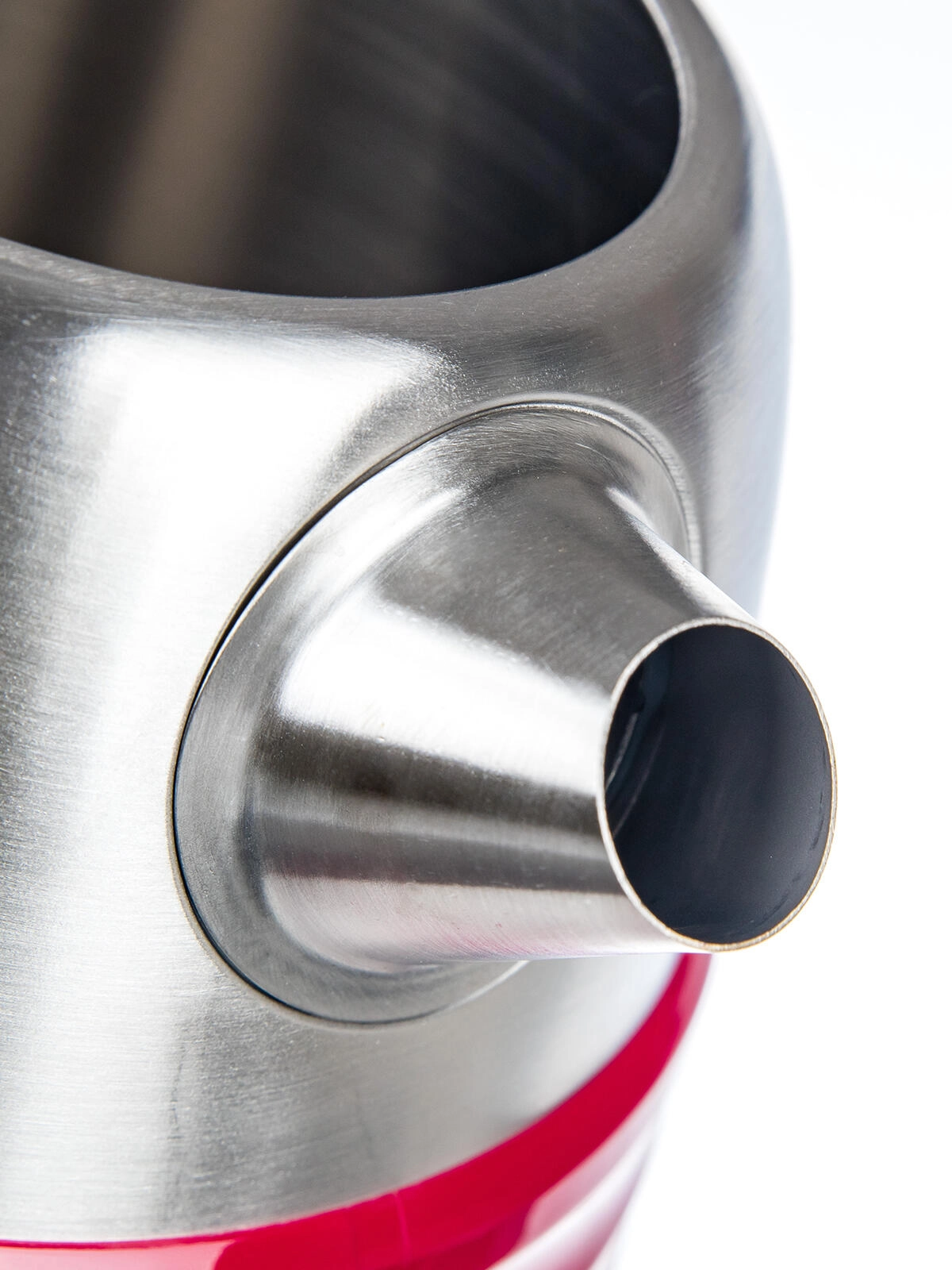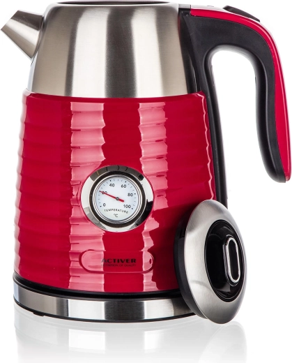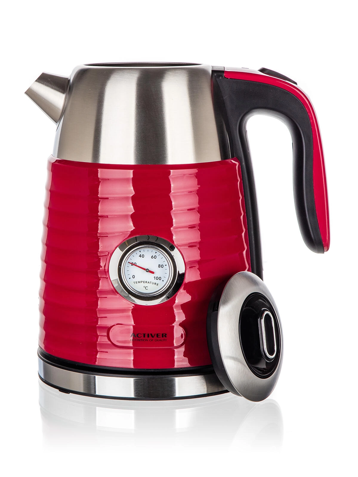 Czajnik elektryczny JUMPER o pojemności 1,7 l łączy eleganckie czerwone wykończenie z praktycznym, stalowym wnętrzem. Dwuścienna konstrukcja ogranicza ryzyko oparzenia przy przypadkowym dotyku, a jednocześnie lepiej utrzymuje wodę dłużej ciepłą do stopniowego serwowania. Zintegrowany analogowy termometr pozwala precyzyjnie monitorować temperaturę wody – idealny do przygotowania delikatnych herbat, kawy czy napojów instant.