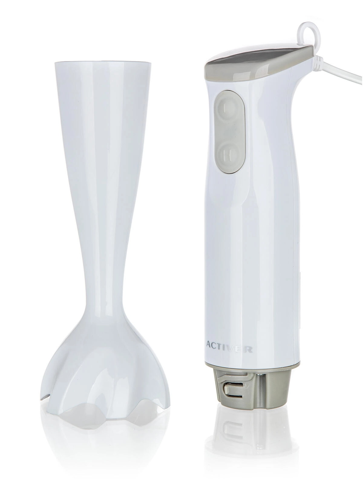 Lekki i niezawodny blender ręczny o mocy 350 W poradzi sobie z codziennym przygotowaniem zup, sosów i dań dla dzieci. Oferuje dwa poziomy prędkości, proste sterowanie, ergonomiczny uchwyt oraz szybki montaż do wygodnego blendowania bezpośrednio w naczyniu.