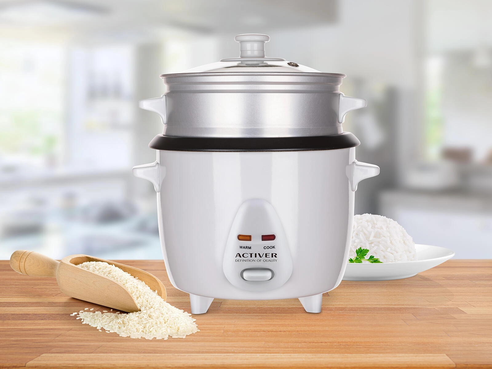 W zestawie znajduje się nakładka do gotowania na parze do zdrowego przyrządzania warzyw i ryb, miarka do precyzyjnego dozowania oraz łyżka do wygodnego serwowania. Nieprzywierający wewnętrzny garnek zapobiega przypalaniu ryżu i sprawia, że czyszczenie zajmuje chwilę. Szklana pokrywa z zaworem parowym umożliwia kontrolę gotowania, a kontrolki świetlne i antypoślizgowe nóżki zwiększają bezpieczeństwo i komfort.