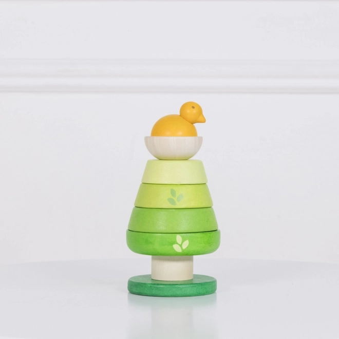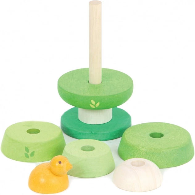 Odkryj wysokiej jakości układaną zabawkę w kształcie drzewa z uroczym ptaszkiem na szczycie. Elementy w różnych odcieniach zieleni motywują dzieci do rozróżniania kolorów i kształtów, a stabilna podstawa zapewnia bezpieczną zabawę. Dzięki elastycznemu prętowi układanie jest wygodne i łagodne nawet dla najmniejszych rączek.