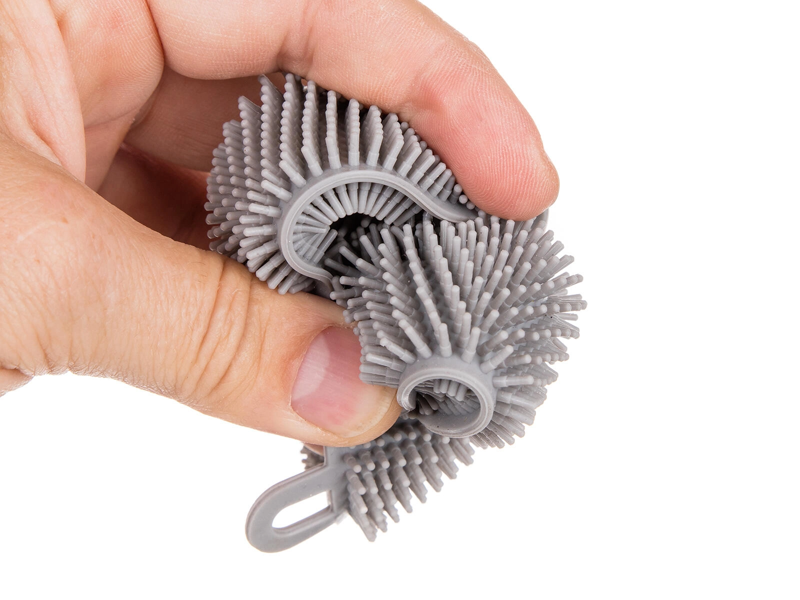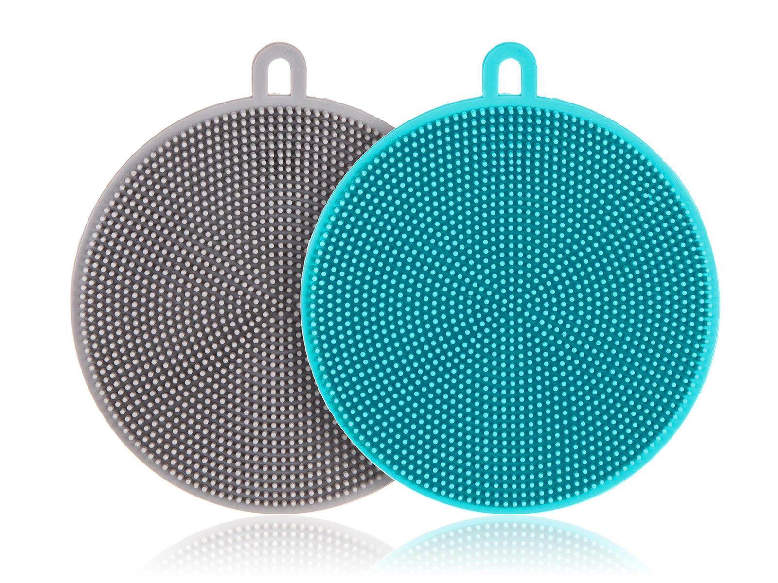 Praktyczny, dwuczęściowy zestaw silikonowych gąbek jest idealny do codziennego mycia naczyń, garnków i patelni. Gęste, elastyczne wypustki skutecznie usuwają resztki jedzenia, nie rysując powierzchni z powłoką nieprzywierającą. Gąbki wykonane są z wysokiej jakości, odpornego na ciepło silikonu i można je wygodnie myć w zmywarce.
