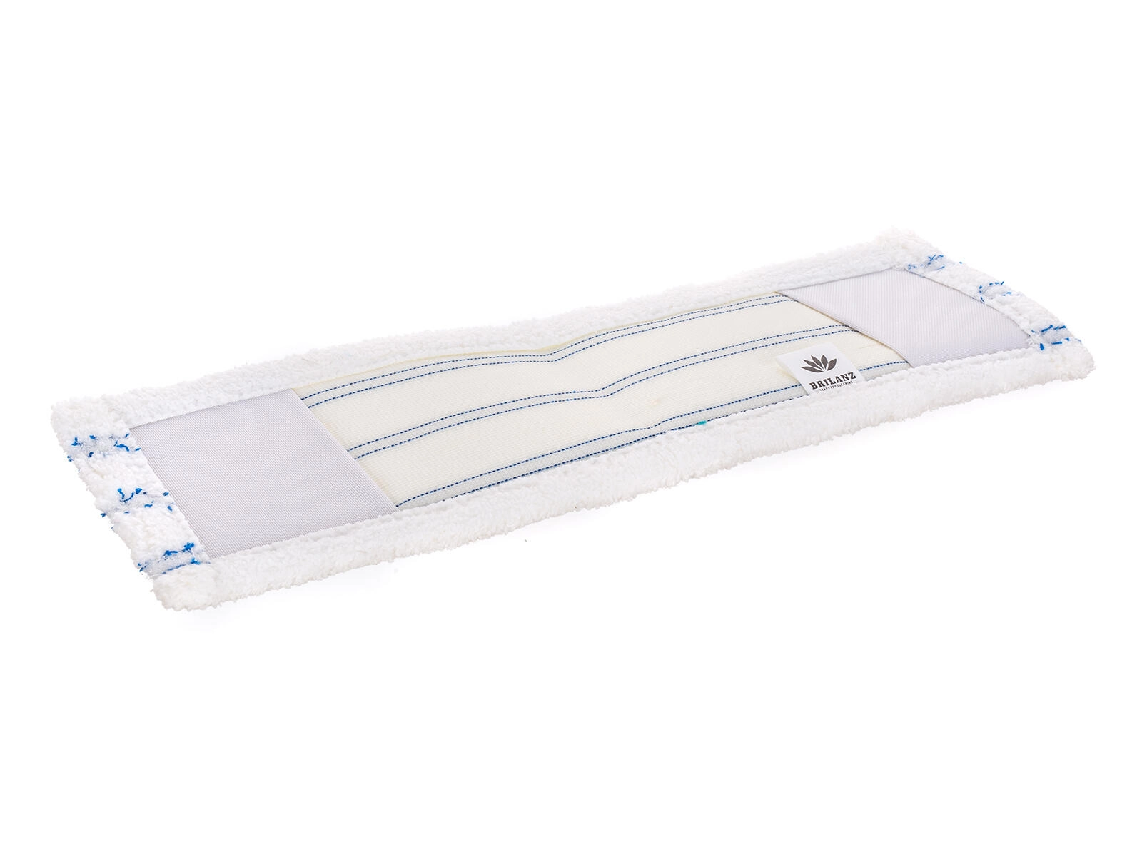 Uniwersalny wymiar 39,5 × 9 cm pasuje do standardowych płaskich mopów z kieszeniami. Dzięki wytrzymałemu materiałowi wkład nadaje się do czyszczenia na sucho i na mokro, gładko sunie po powierzchni i nie pozostawia włókien. Po użyciu łatwo go wyprać i wykorzystać ponownie, oszczędzając czas i pieniądze.