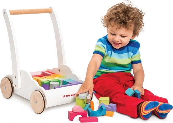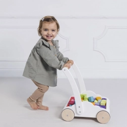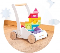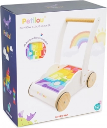 Wózek z tęczowymi klockami Petilou został zaprojektowany, aby dodać dzieciom pewności siebie i stabilności podczas stawiania pierwszych kroków. Wyposażony w 45 klocków w różnych odcieniach tęczy, wspiera rozwój wyobraźni przestrzennej, zręczności i motoryki.
