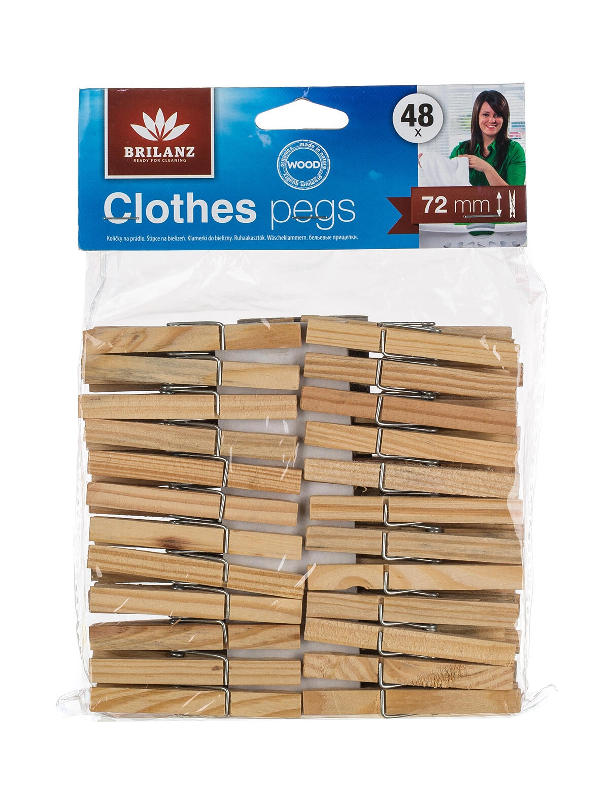 Praktyczny zestaw 24 drewnianych klamerek do prania do bezpiecznego i pewnego mocowania prania na sznurku. Klamerki z mocną metalową sprężyną utrzymują pranie nawet przy wietrze, nadają się do użytku wewnętrznego i zewnętrznego oraz mają naturalne drewniane wykończenie zapewniające długą żywotność.