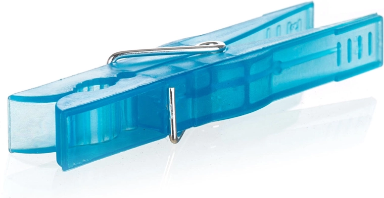 Wytrzymała sprężyna bezpiecznie utrzymuje pranie na sznurku nawet przy wietrznej pogodzie. Karbowane końcówki zwiększają tarcie i zapobiegają zsuwaniu się tkanin.