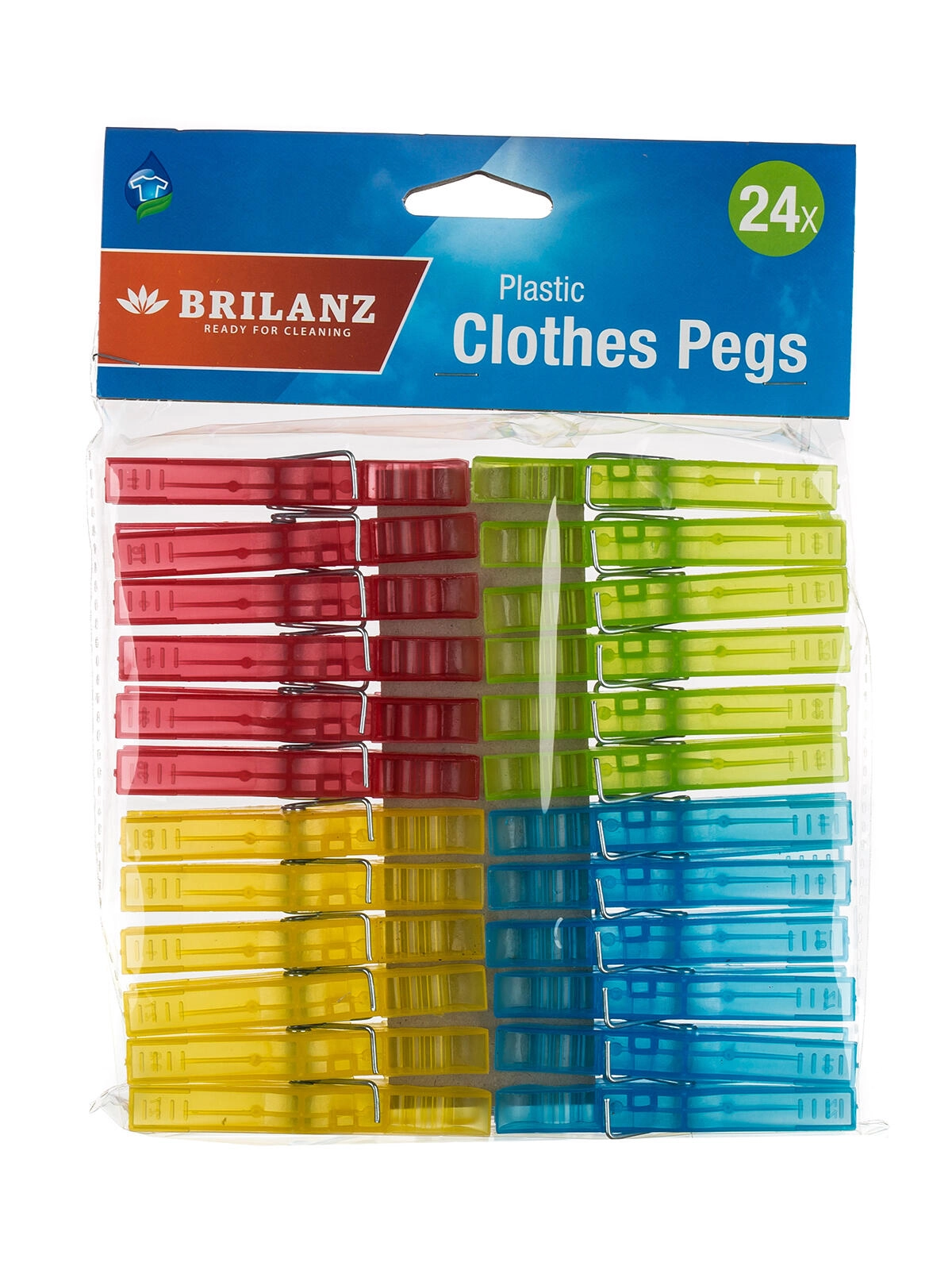 Praktyczny zestaw 24 plastikowych klamerek do prania w miksie kolorów (żółty, czerwony, niebieski, zielony) do niezawodnego mocowania prania na sznurku lub suszarce. Odpowiednie do użytku wewnątrz i na zewnątrz, z wytrzymałą sprężyną zapewniającą mocny chwyt i długą żywotność.