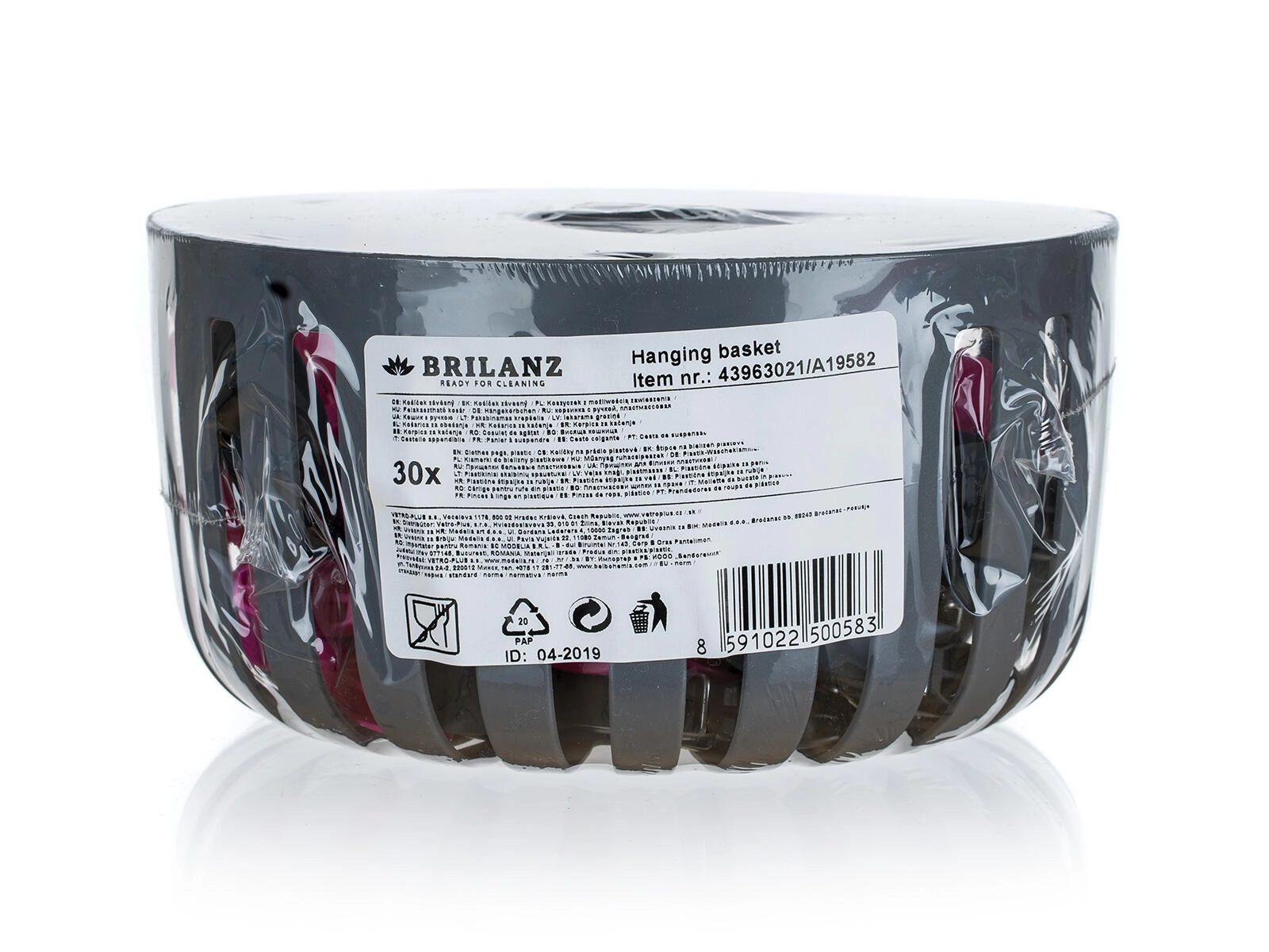 Zadbaj o porządek podczas suszenia prania dzięki wiszącemu koszykowi BRILANZ z 30 klamerkami. Koszyk z haczykiem łatwo zawiesisz na sznurku lub drążku, a otwarte lamele zapewniają dobrą cyrkulację powietrza i odpływ wody. Klamerki z wytrzymałego plastiku mocno trzymają pranie i są idealne do codziennego użytku w domu i na balkonie.