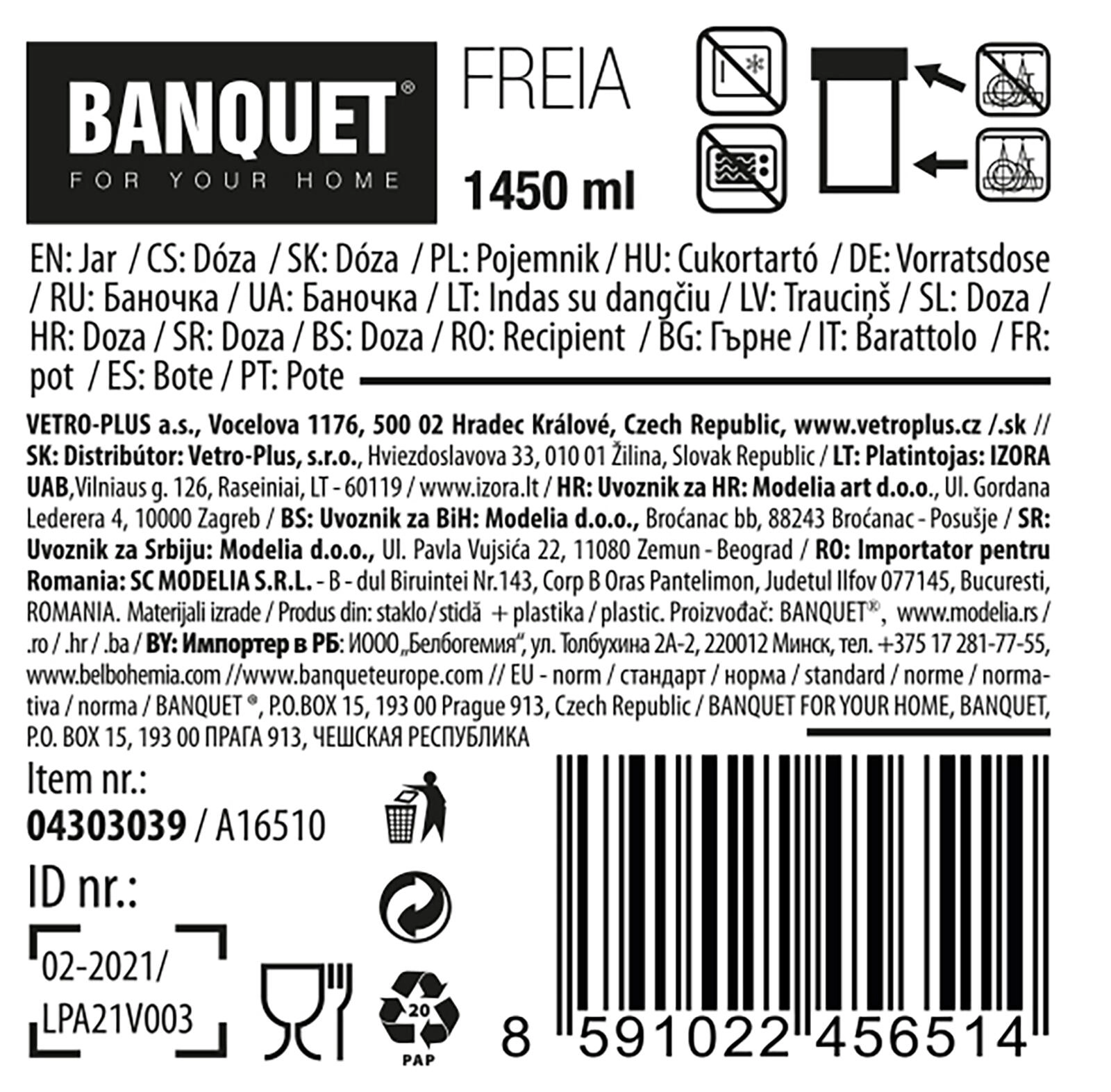 Praktyczny szklany słoik FREIA 1,45 l z pokrywką ze stali nierdzewnej utrzyma Twoje produkty spożywcze dłużej świeże i przejrzyście uporządkowane. Dzięki wysokiej jakości przezroczystemu szkłu od razu widzisz zawartość bez konieczności otwierania, a solidna pokrywka pomaga lepiej zachować smak i aromat.