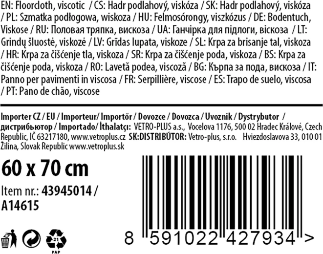 Ta uniwersalna ścierka do podłogi jest idealna do codziennego sprzątania w domu i biurze. Dzięki materiałowi z wiskozy doskonale wchłania wodę i zabrudzenia, dzięki czemu mycie jest szybkie i bez wysiłku. Wymiar 60 × 70 cm zapewnia wystarczającą powierzchnię do efektywnej pracy.