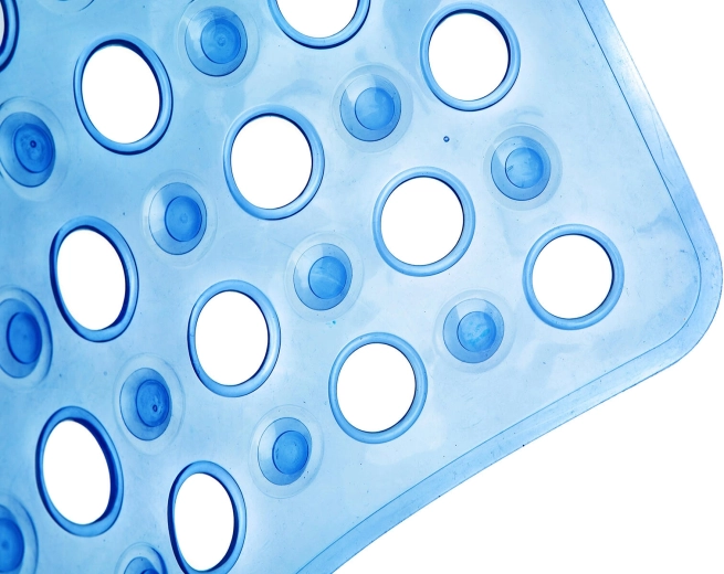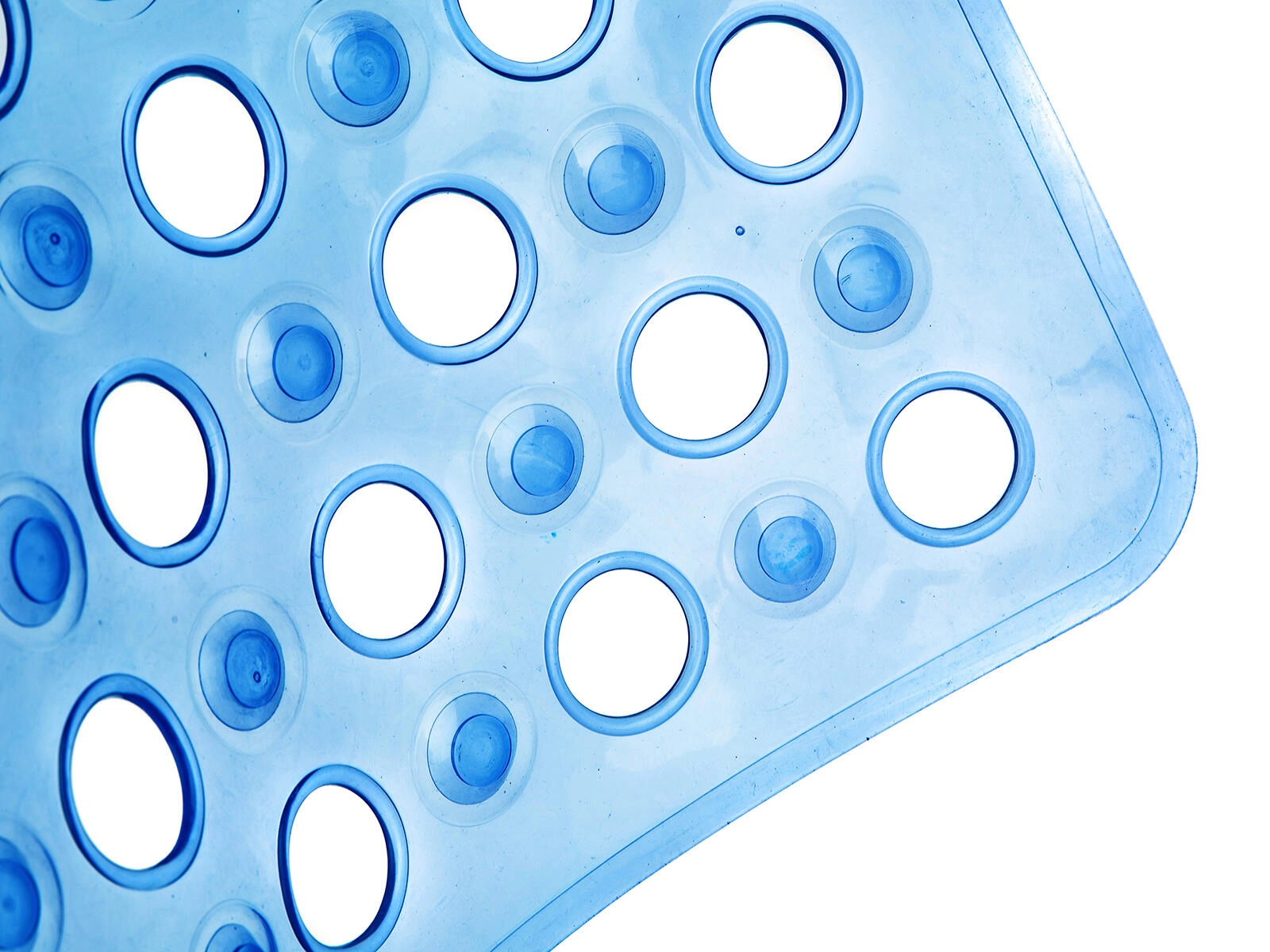 Ciesz się komfortowym i bezpiecznym prysznicem z matą do wanny CIRCLE w transparentnym niebieskim kolorze. Gęsto rozmieszczone przyssawki na spodzie zapewniają stabilną przyczepność do powierzchni wanny, a antypoślizgowa struktura minimalizuje ryzyko poślizgnięcia. Subtelny, transparentny design łatwo dopasuje się do wyposażenia każdej łazienki.