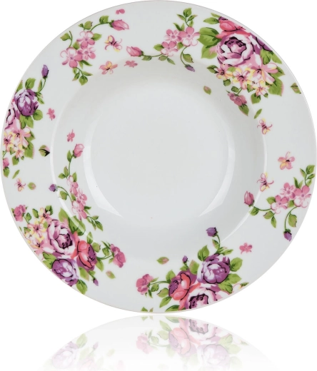 Wprowadź do stołu subtelną elegancję z porcelanowym zestawem Beauty. Stonowane różowo‑fioletowe kwiaty na białym tle oraz błyszcząca glazura podkreślają estetykę i praktyczność, dzięki czemu zestaw sprawdzi się na rodzinne kolacje, niedzielne obiady i uroczyste przyjęcia.
