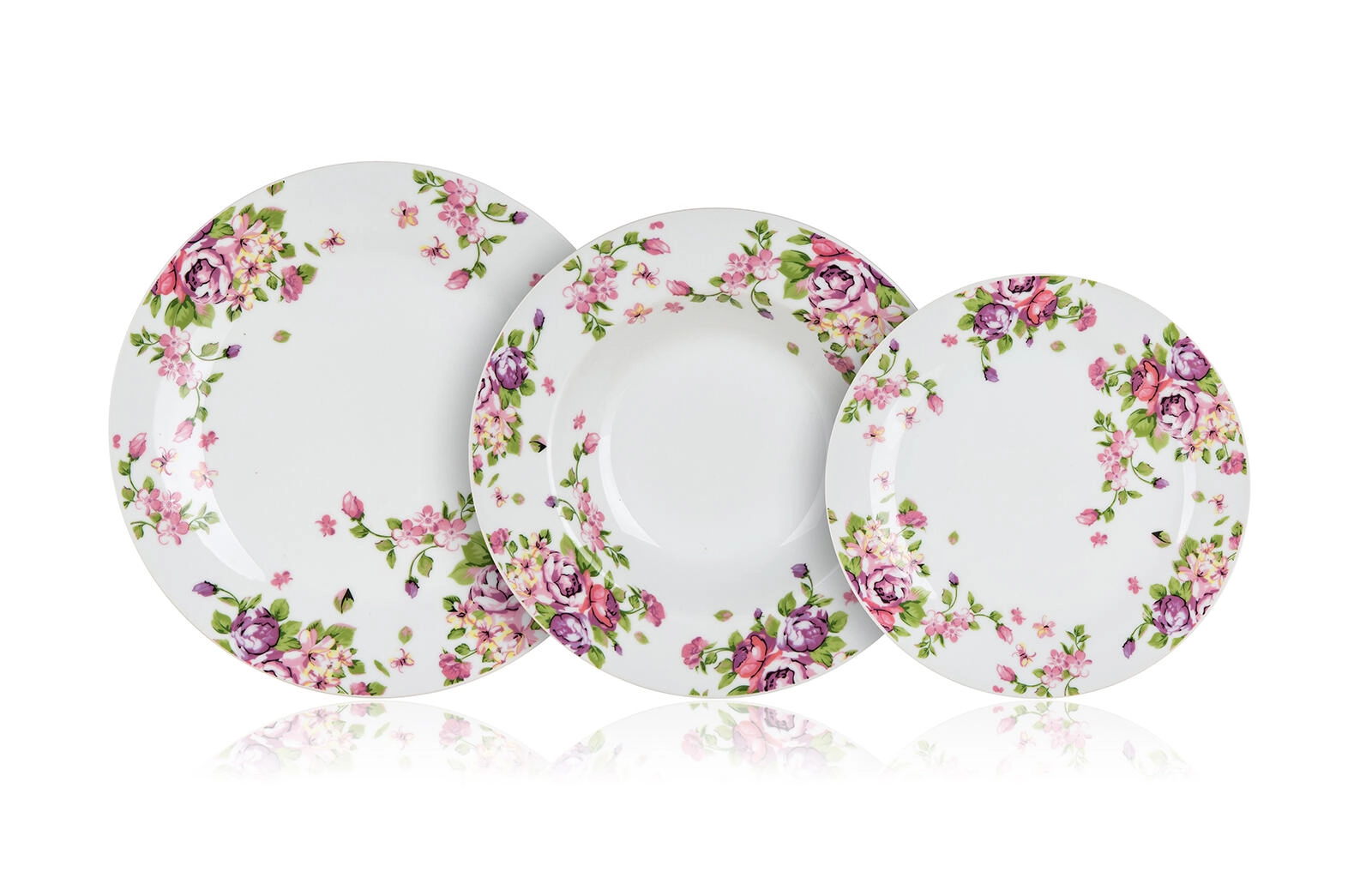 Zestaw zaprojektowano dla 6 osób i obejmuje trzy typy talerzy do pełnego serwowania przystawek, zup, dań głównych i deserów. Wytrzymała porcelana ułatwia pielęgnację – talerze można myć w zmywarce i używać w kuchence mikrofalowej.