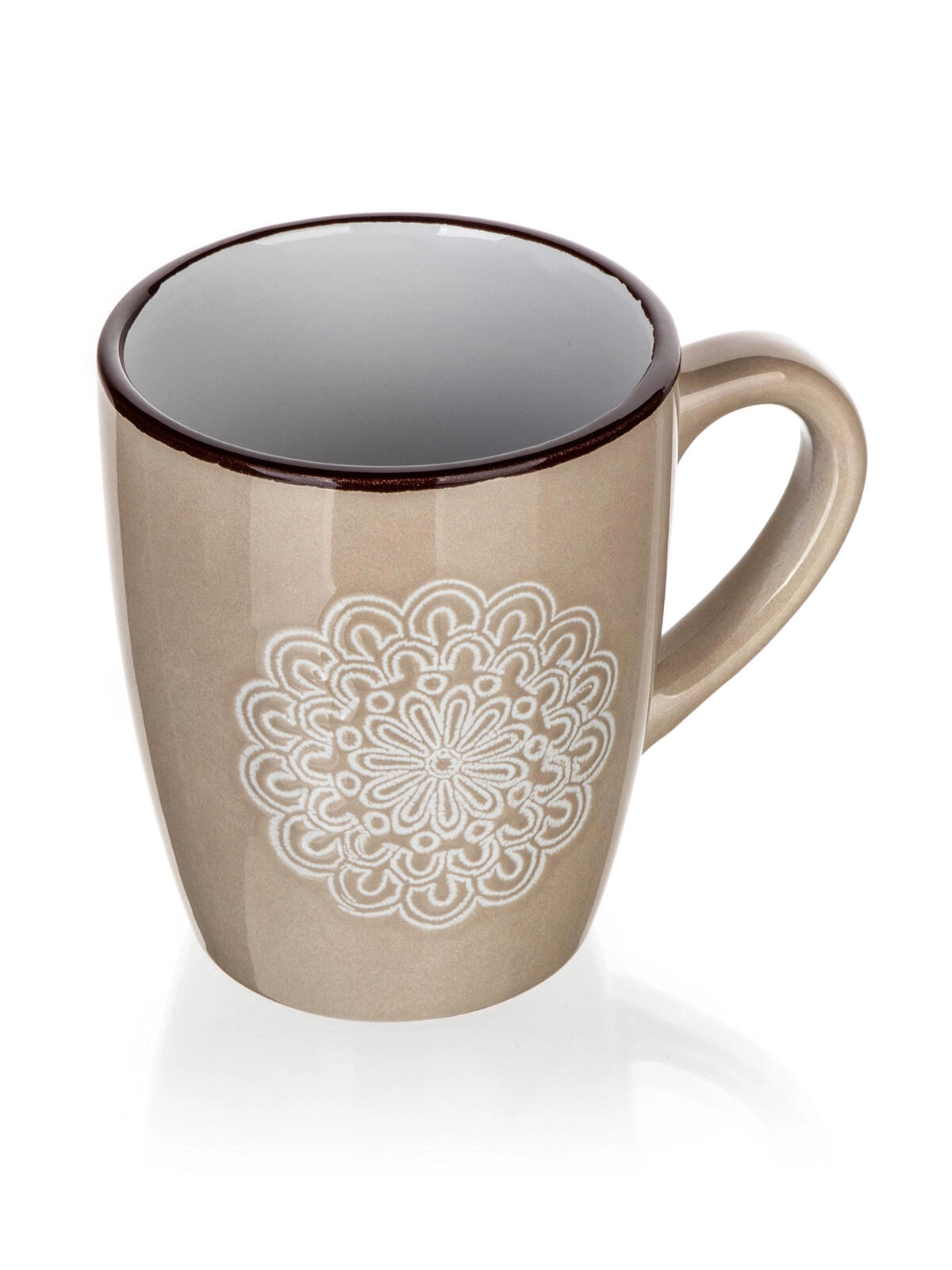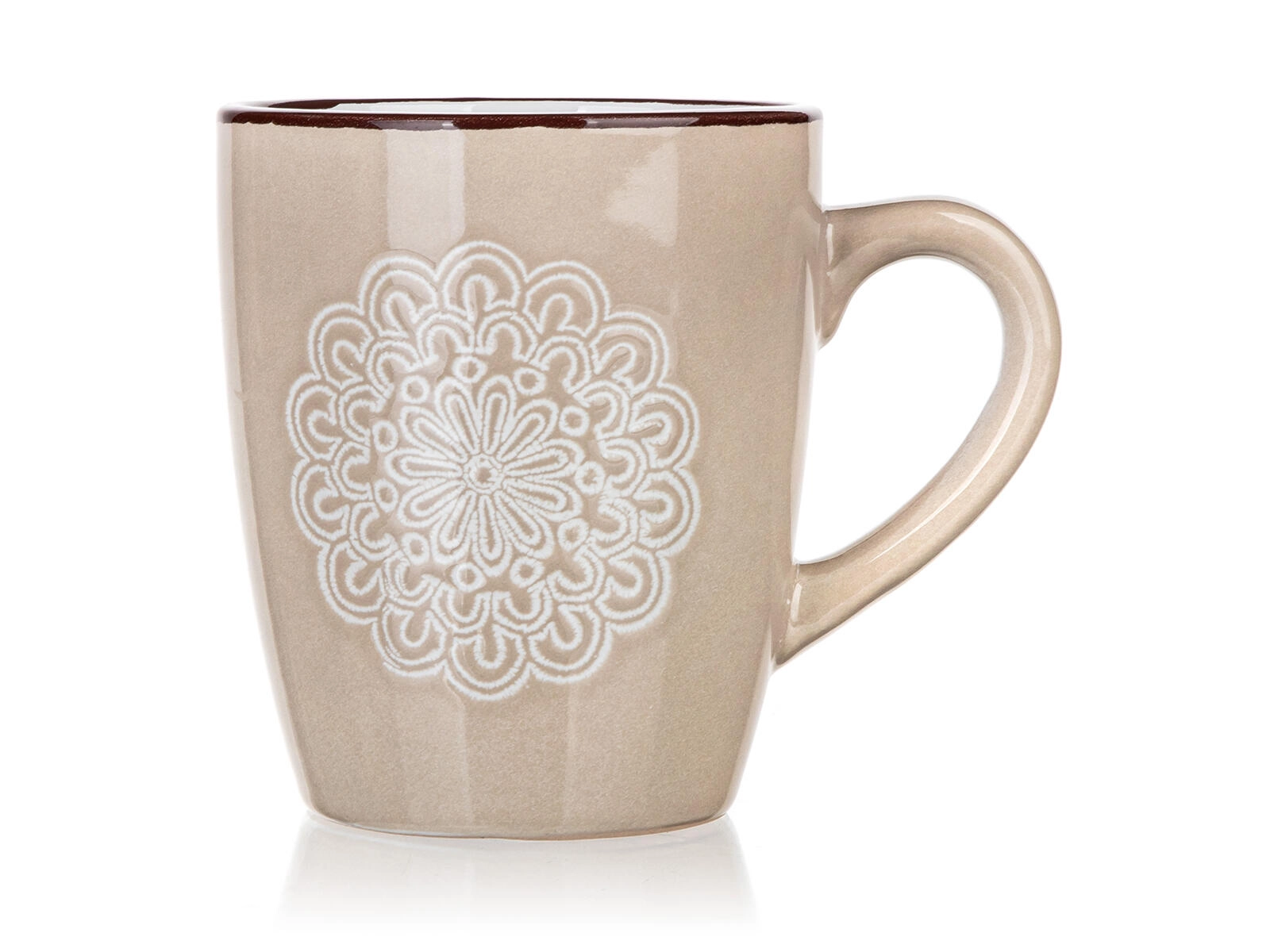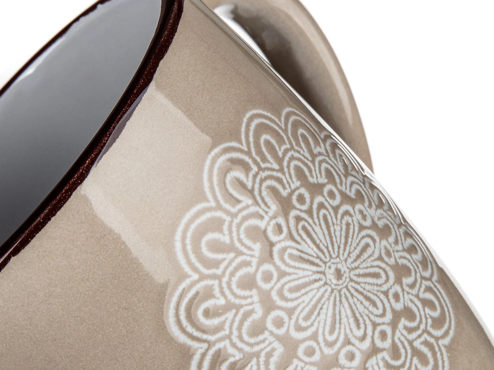Odkryj kubek, który łączy stonowany design z codzienną praktycznością. Kremowy odcień i reliefowy koronkowy (mandala) wzór dodają Twojemu nakryciu stołu subtelnej elegancji, a pojemność 400 ml jest idealna na cappuccino, herbatę i napary ziołowe.