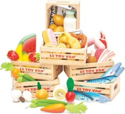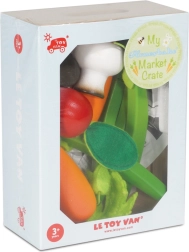 Odkryj urok zabawy w sklep z drewnianą skrzynką pełną warzyw od LE TOY VAN. Starannie wykonane elementy, takie jak marchewka, rzodkiewka, pieczarki i cukinia, wspierają wyobraźnię, małą motorykę oraz naukę o zdrowym odżywianiu. Wykonane z zrównoważonego drewna i malowane nietoksycznymi farbami na bazie wody – bezpieczny wybór dla małych rączek.