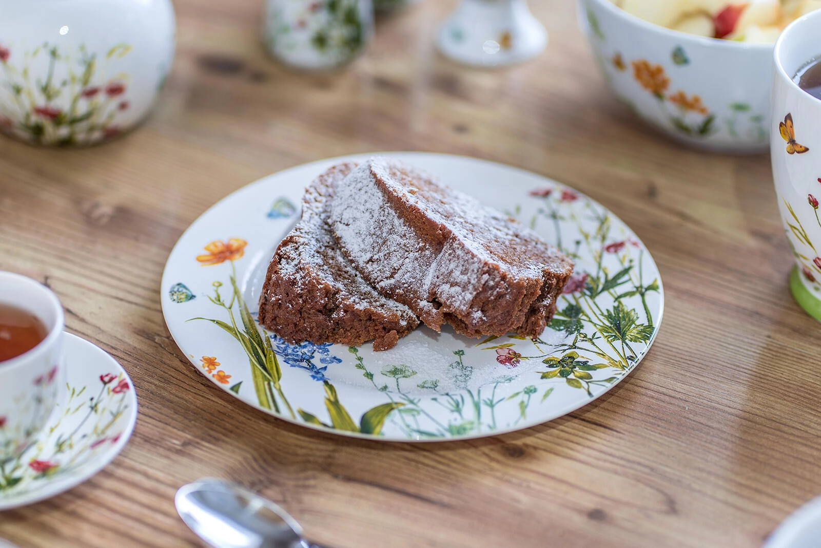 Delektuj się deserami ze stylem. Talerzyk deserowy Meadow z kolorowym kwiatowym wzorem i delikatnymi ilustracjami motyli rozświetli codzienne i świąteczne nakrycie stołu. Uniwersalny rozmiar 19 cm sprawdzi się do ciast, deserów i małych przekąsek na słono.
