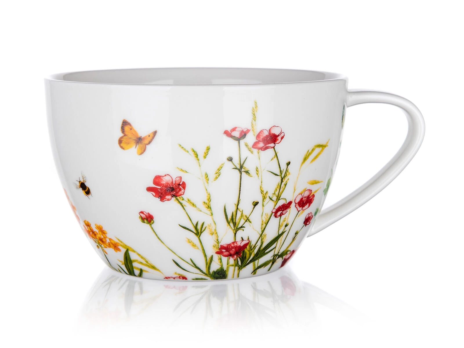 Duży ceramiczny kubek Jumbo Meadow (550 ml) jest idealny na codzienne chwile relaksu. Naturalny kwiatowy motyw z motylkiem i pszczółką doda serwowaniu wyjątkowego uroku i łatwo łączy się z innymi elementami w tym samym dekorze.