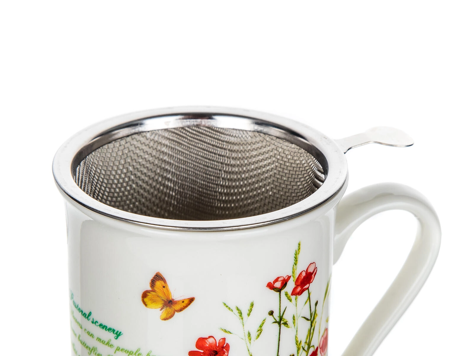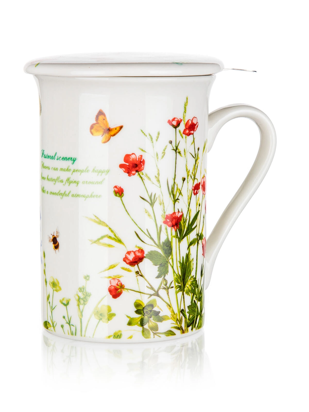 Ceramiczny kubek z pokrywką i stalowym sitkiem 300 ml Meadow Flowers