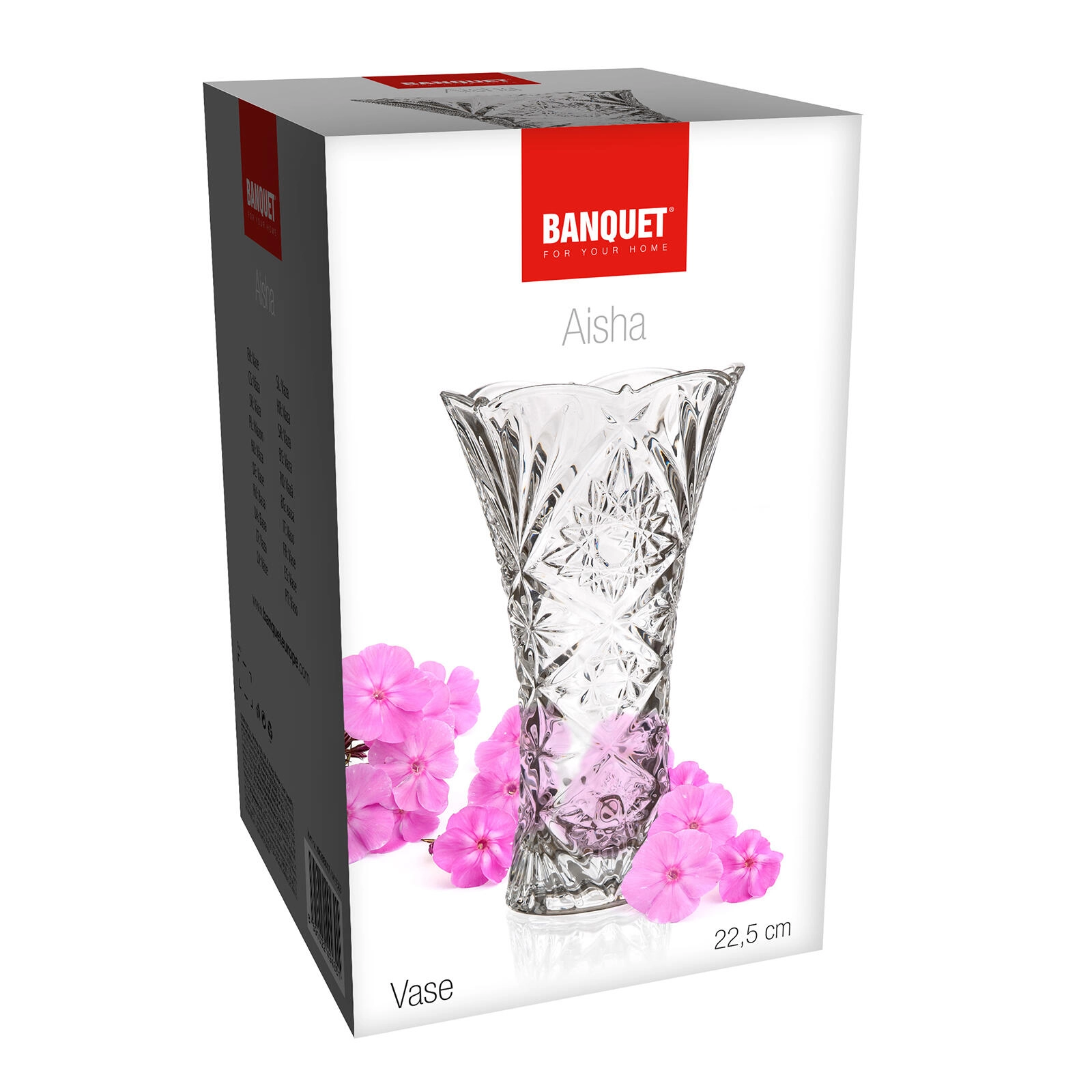Elegancki szklany wazon Aisha o wymiarach 13 × 23 cm doskonale uzupełni nowoczesne i klasyczne wnętrza. Idealny na świeże kwiaty oraz stylowe dekoracje, wyróżnia się czystym designem i wysokiej jakości szkłem.