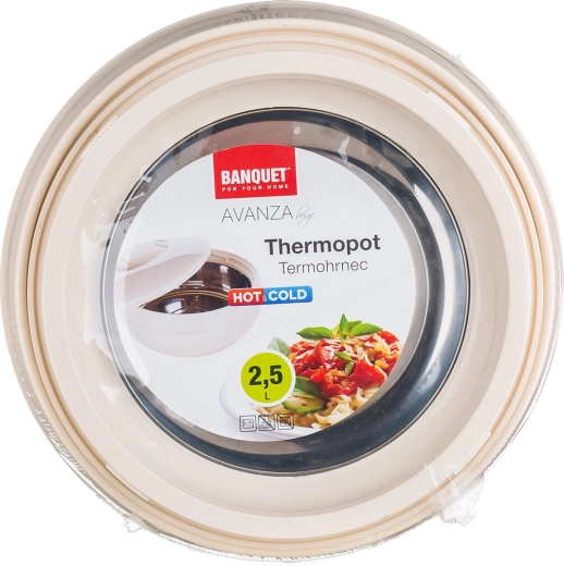 Termomisa AVANZA o pojemności 2,5 l to świetny pomocnik w każdej kuchni. Wewnętrzna wkładka ze stali nierdzewnej oraz wypełnienie z pianki PUR zapewniają niezawodną izolację termiczną, dzięki czemu zupy, sosy czy dodatki zachowują właściwą temperaturę aż do podania. Eleganckie beżowe wykończenie pasuje do każdego stołu.