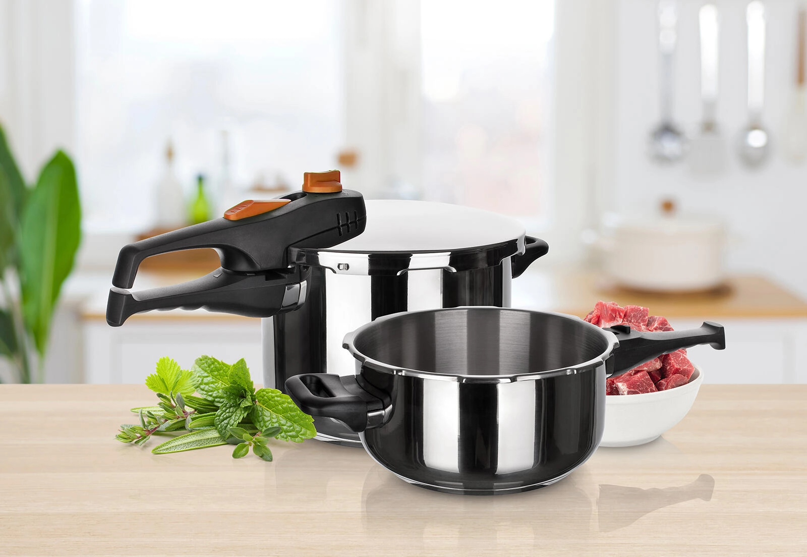 Szybkie i bezpieczne gotowanie z eleganckim zestawem szybkowarów ADAGIO o pojemności 4 l i 6 l. Dzięki bagnetowemu zamknięciu, zaworowi roboczemu oraz blokadzie przed otwarciem gotujesz z pełnym spokojem. Grube, kanapkowe dno zapewnia równomierne rozprowadzanie ciepła oraz kompatybilność ze wszystkimi typami płyt grzewczych, w tym indukcją. Opcjonalne ciśnienie robocze 0,6 / 0,9 bara przyspiesza przygotowanie potraw i zachowuje smak oraz wartości odżywcze.