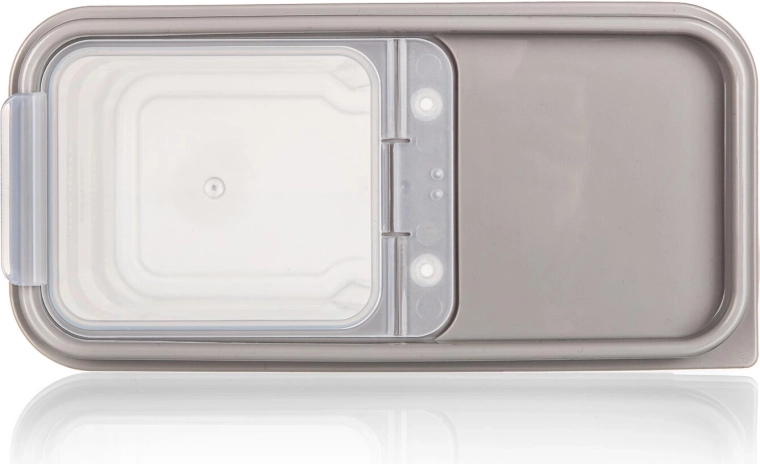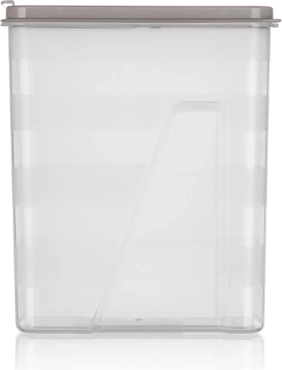 Pokrywka flip-top w odcieniu latte pozwala na szybkie otwieranie i wygodne dozowanie, jednocześnie chroniąc żywność przed wilgocią i niepożądanymi zapachami. Pojemnik ma oszczędzający miejsce, prostokątny kształt, który świetnie pasuje do szafek i szuflad, pomagając zaoszczędzić miejsce w kuchni.