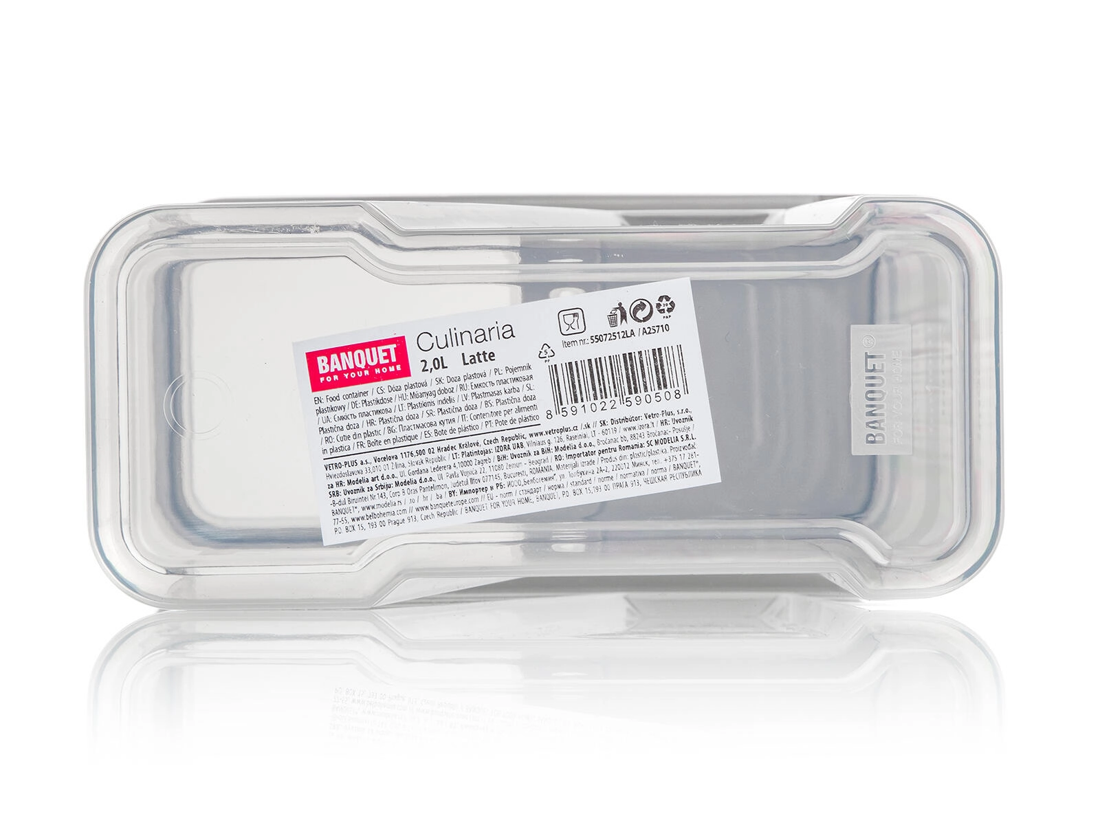 Przezroczyste ścianki o prostokątnym kształcie ułatwiają kontrolę zapasów i oszczędzają miejsce na półkach oraz w szufladach.