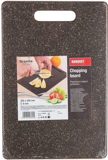 Stylowa deska do krojenia w brązowym kolorze z efektem kamienia nada Twojej kuchni nowoczesny wygląd, a jednocześnie zapewni stabilną powierzchnię do krojenia owoców, warzyw, mięsa czy pieczywa. Wykonana z wysokiej jakości polipropylenu, odpornego na zużycie i niepochłaniającego zapachów.