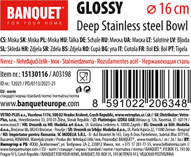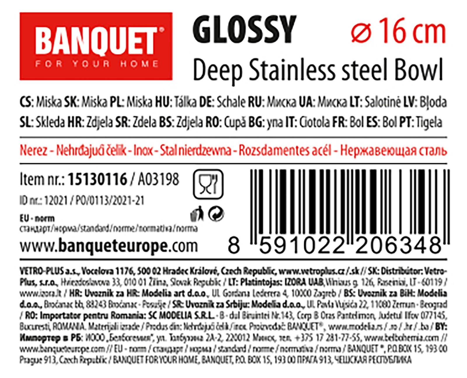 Miska Glossy ze stali nierdzewnej o średnicy 16 cm jest idealna do przygotowywania i serwowania. Dzięki głębokiemu kształtowi sprawdzi się do mieszania sałatek, ubijania, podawania dodatków oraz przechowywania składników. Wysokiej jakości stal nierdzewna zapewnia długą żywotność i łatwą pielęgnację.