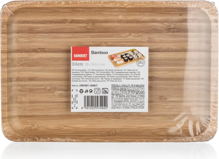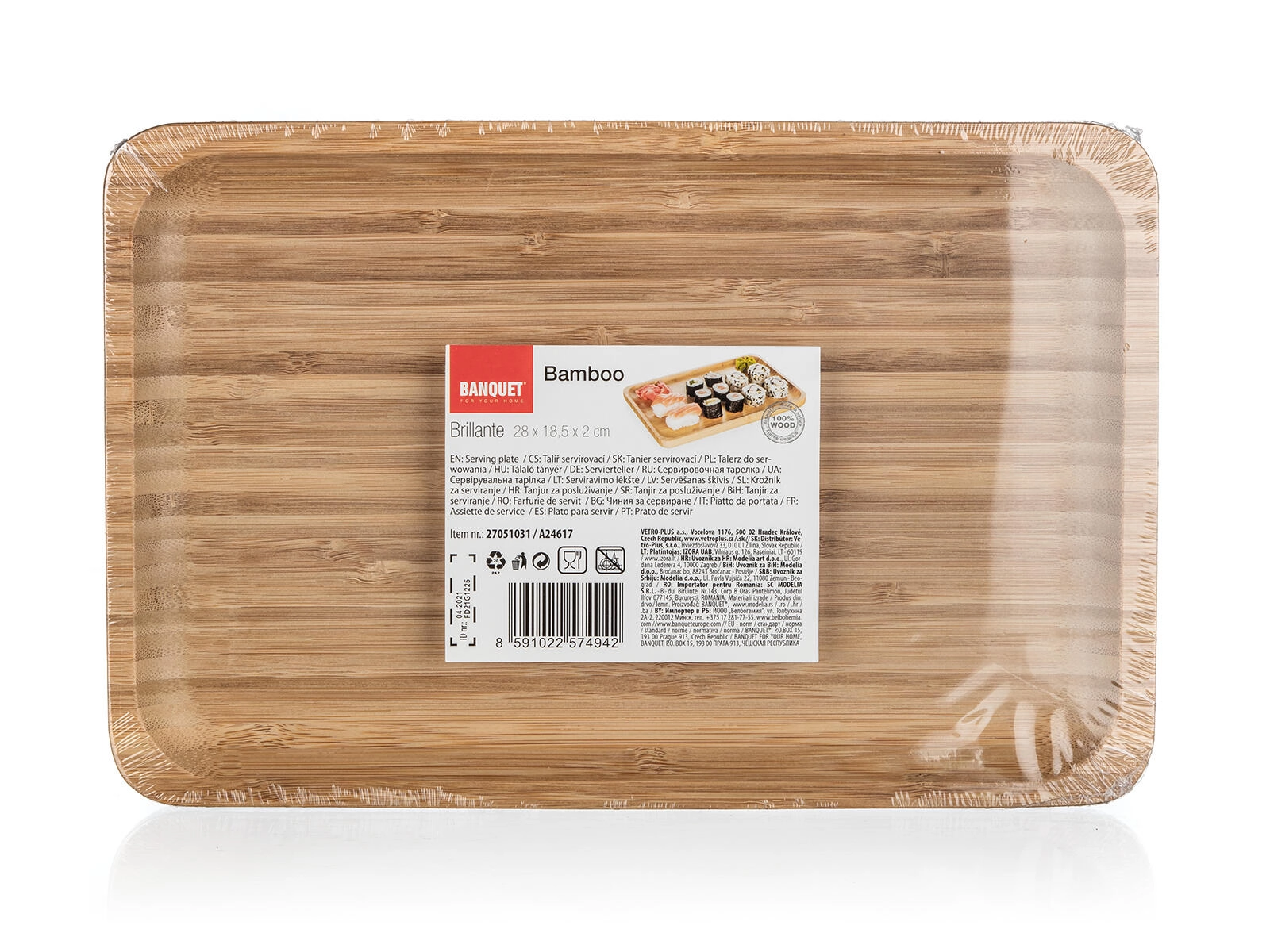 Stylowy i praktyczny talerz do serwowania BRILLANTE z wysokiej jakości bambusa to świetny wybór na co dzień i na specjalne okazje. Naturalny bambus wyróżnia się odpornością, niską wagą i łatwą pielęgnacją. Delikatnie podwyższona krawędź zapewnia bezpieczne serwowanie bez niechcianego zsuwania się potraw.
