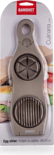 Praktyczna krajalnica do jajek CULINARIA Latte ułatwia przygotowanie sałatek i półmisków. Jednym ruchem tworzy równomierne plastry lub cząstki (księżyce) dzięki stalowym strunom z nierdzewki. Wytrzymała konstrukcja z plastiku, łatwa pielęgnacja w zmywarce i wygodne użytkowanie w każdej kuchni.
