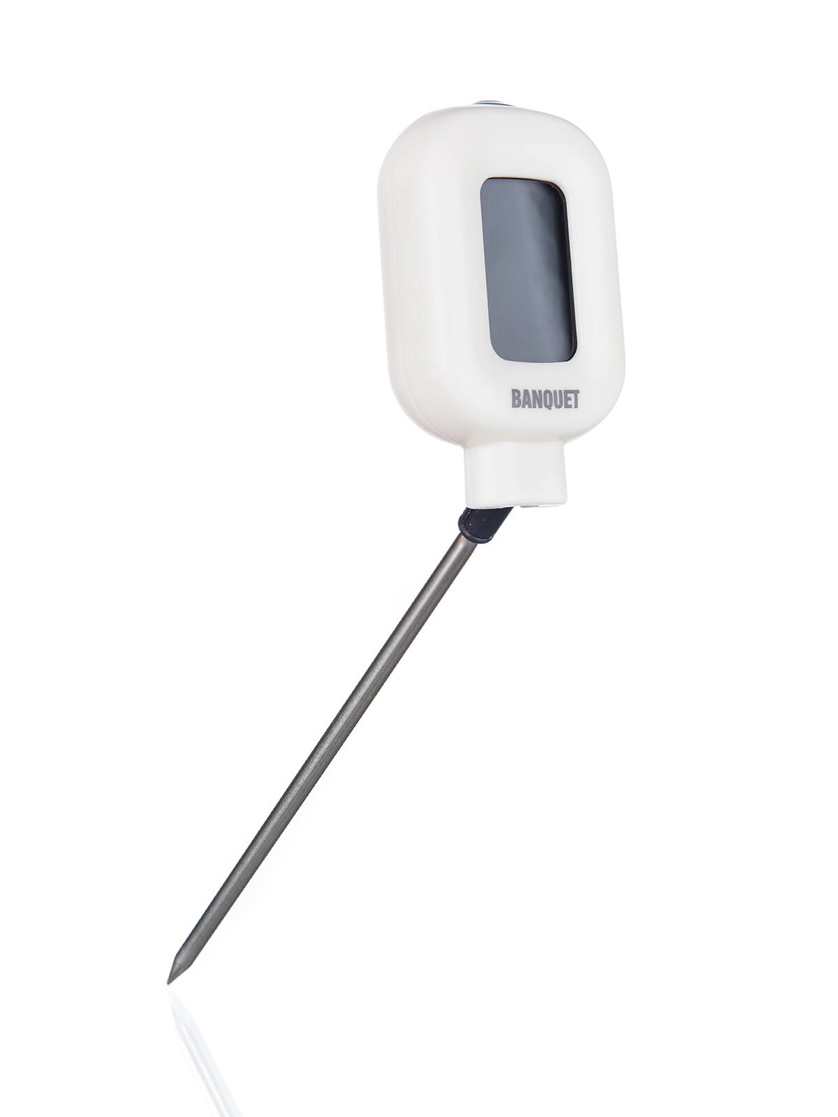 Upiecz soczyste mięso i przygotuj idealnie wypieczone pieczywo z pomocą precyzyjnego cyfrowego termometru CULINARIA. Długa sonda ze stali nierdzewnej łatwo przenika do środka potrawy, a na wyświetlaczu cyfrowym natychmiast zobaczysz aktualną temperaturę. Zakres -30 do 250 °C obejmuje wszystko: od czekolady i sosów po steki czy pieczywo.