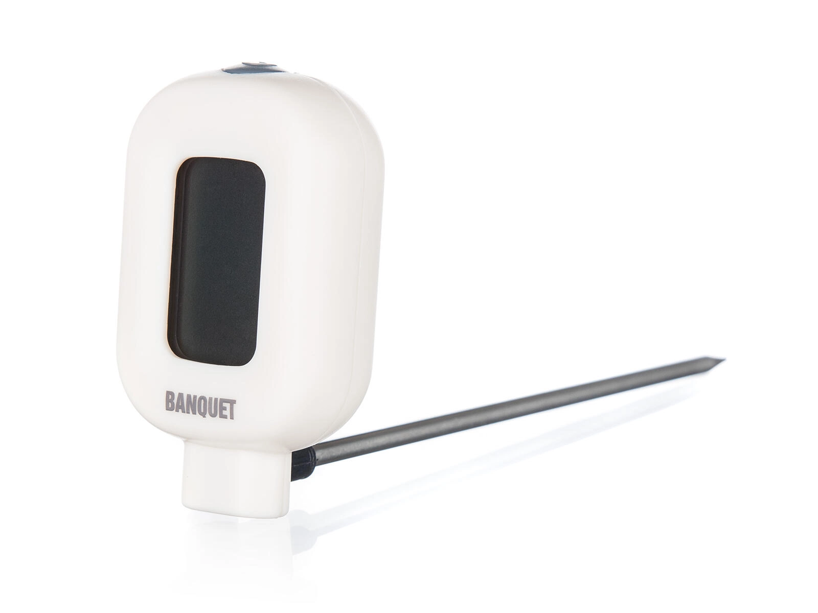- Precyzyjna sonda nierdzewna: higieniczna, wytrzymała i odpowiednia do mięsa, płynów oraz ciasta