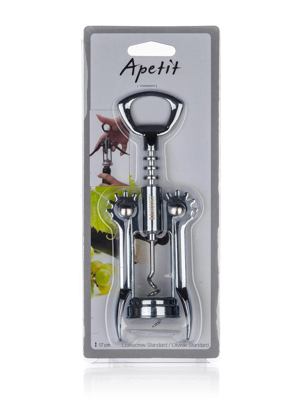 Delektuj się bezproblemowym otwieraniem wina ze skrzydełkowym otwieraczem APETIT. Solidny korpus ze stopu cynku z chromowanym wykończeniem jest trwały i elegancki, a sprytny mechanizm skrzydełkowy umożliwia płynne i bezpieczne wyciąganie korka.