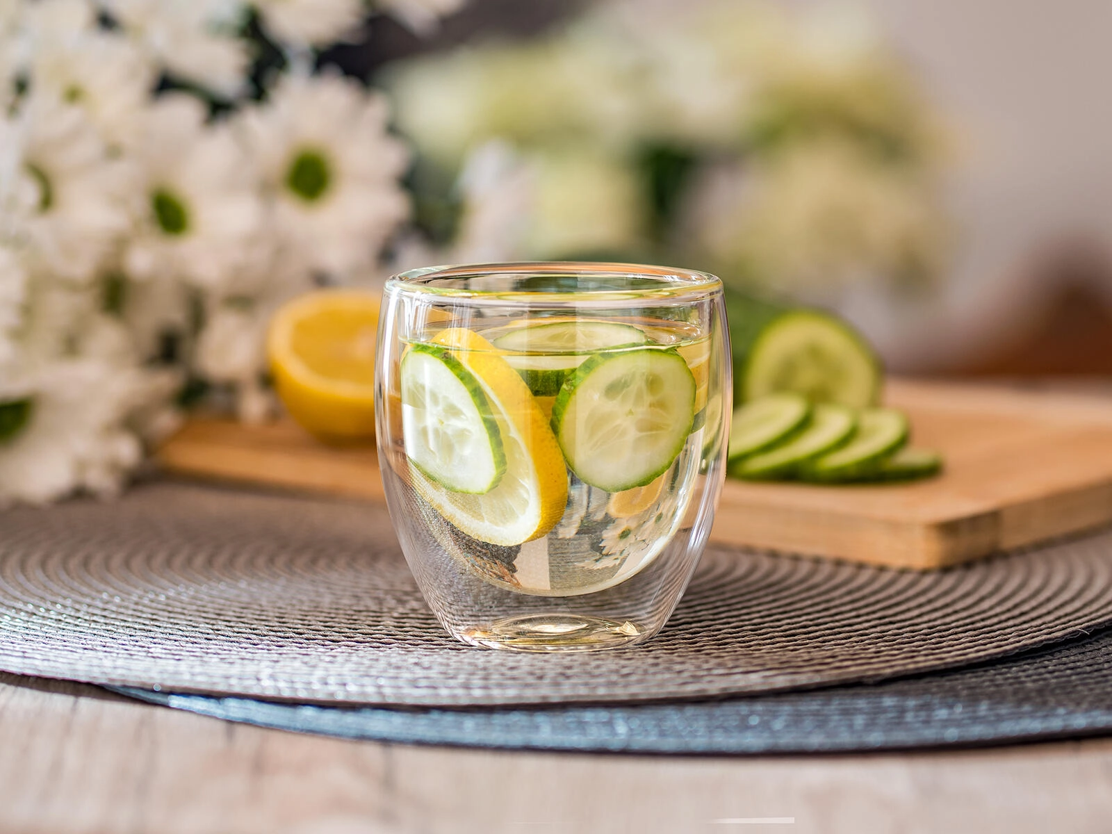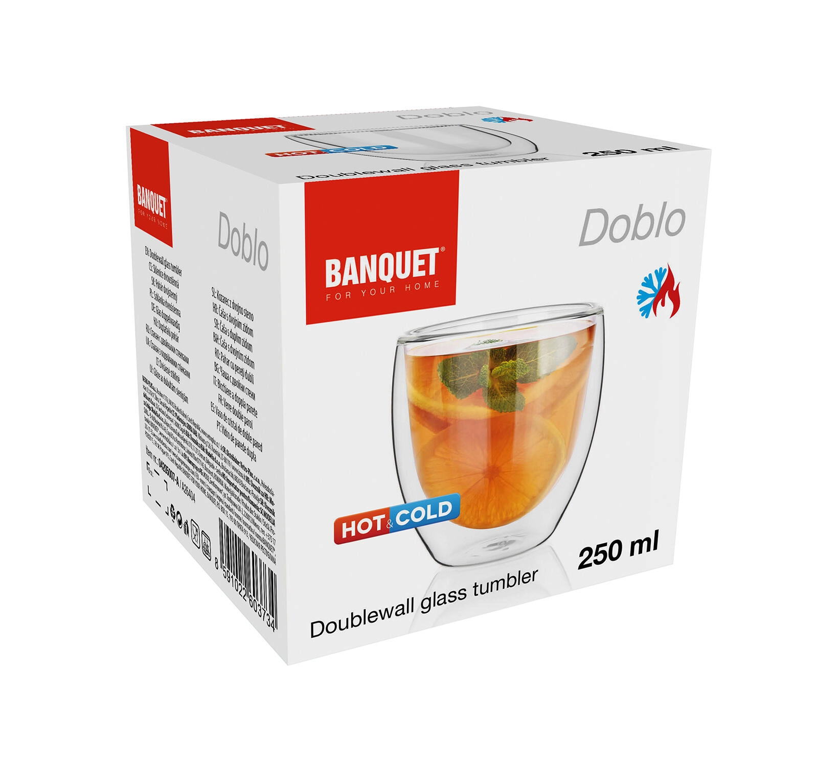Elegancka szklanka DOBLO z podwójną ścianką o pojemności 250 ml utrzymuje napoje dłużej w idealnej temperaturze. Dzięki izolacji z dwóch ścianek gorące napoje pozostają dłużej ciepłe, a zimne napoje orzeźwiające, przy czym zewnętrzna ścianka mniej się nagrzewa i nie paruje. Szklanka jest odpowiednia do zmywarki i doskonale uzupełni nowoczesne nakrycie stołu.
