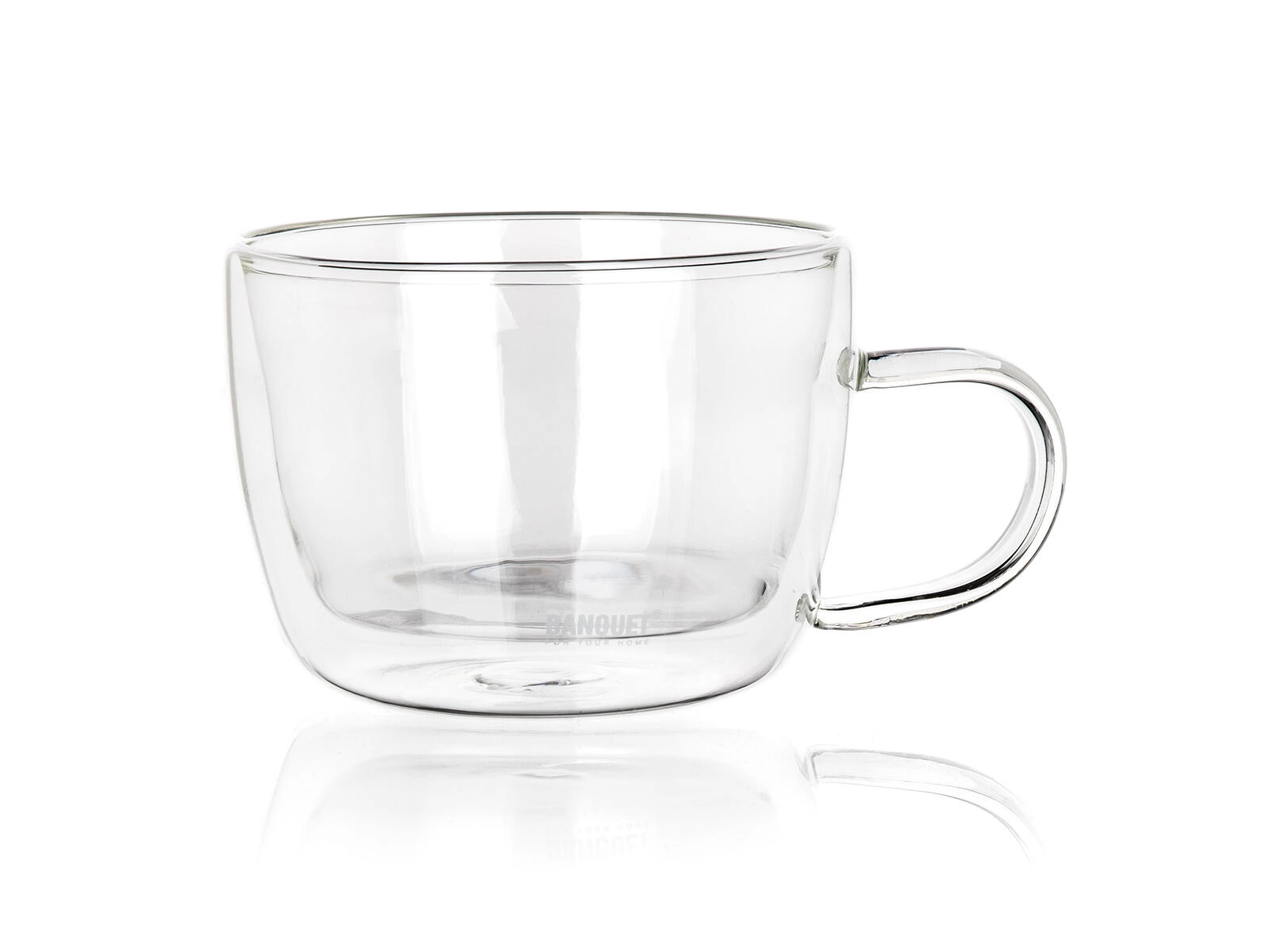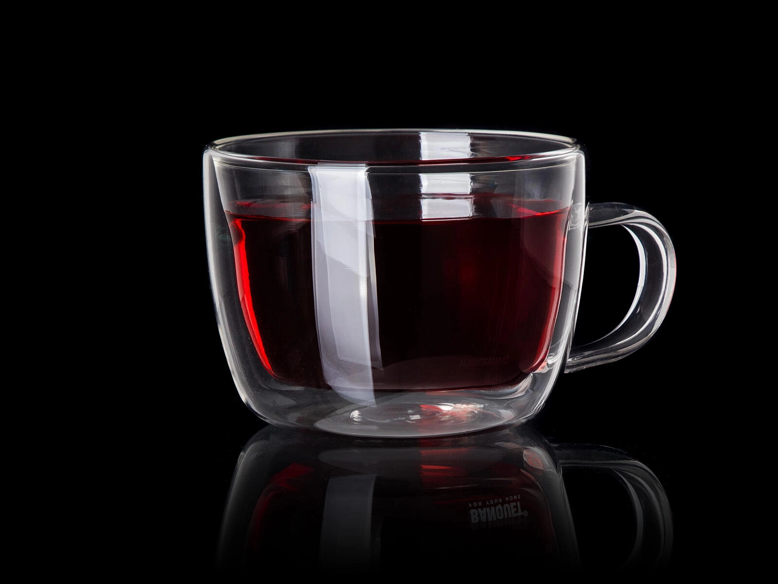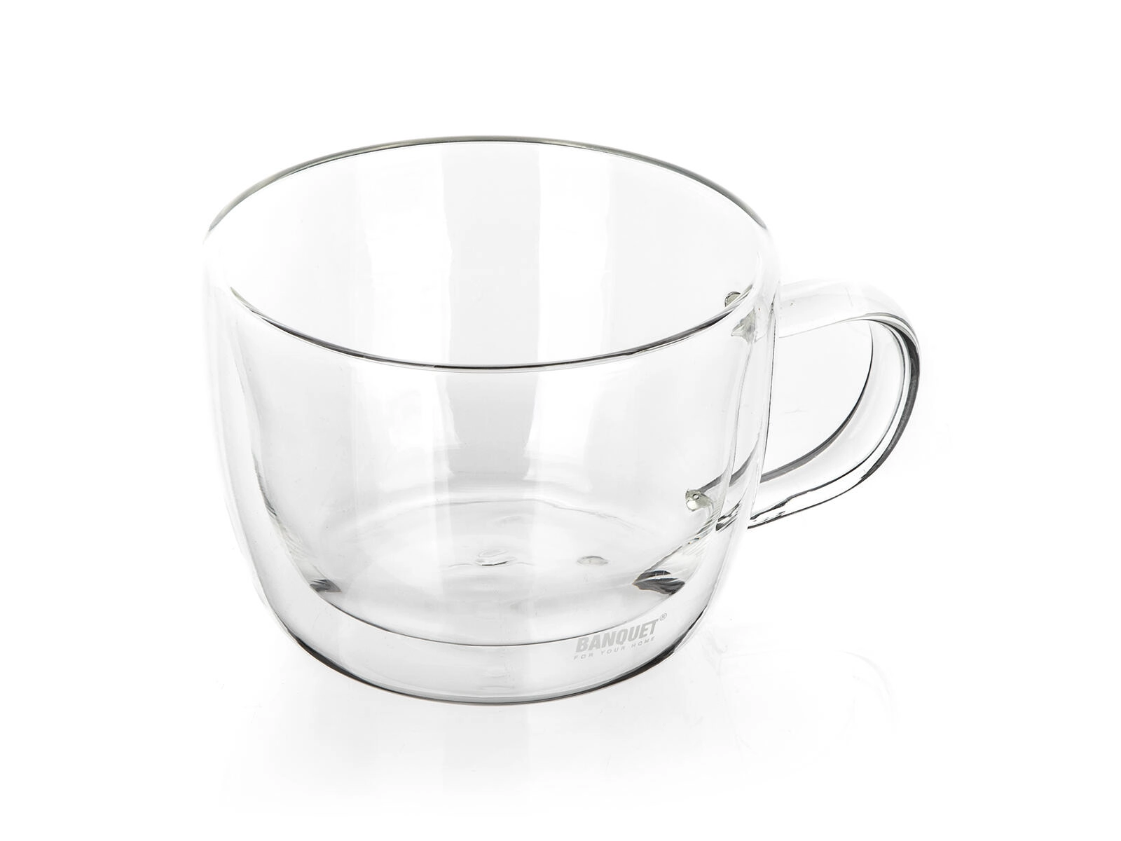 Dwie szklane ścianki dłużej utrzymują napoje gorące lub zimne, a jednocześnie chronią dłonie przed ciepłem.